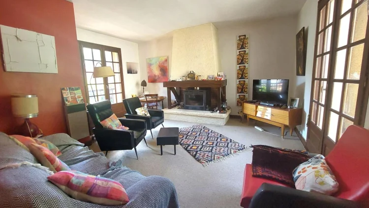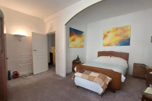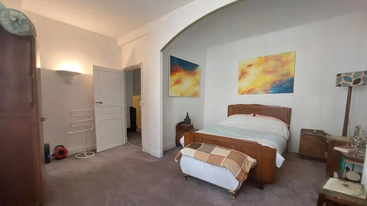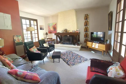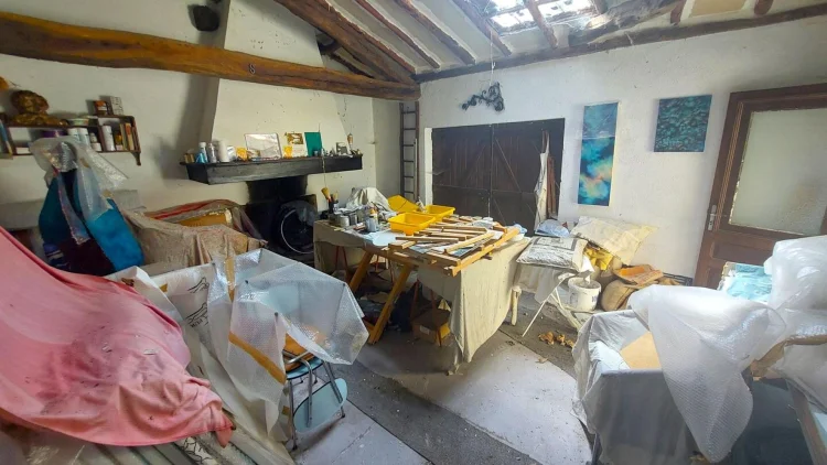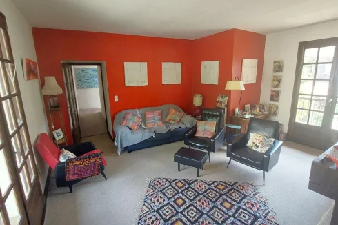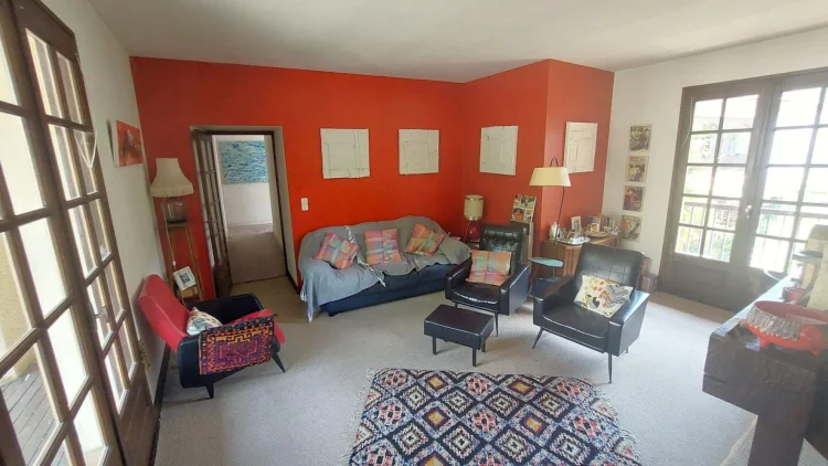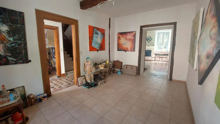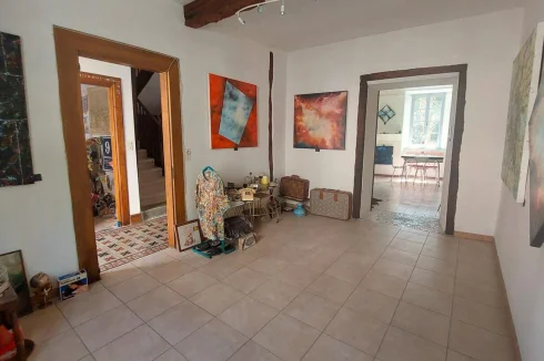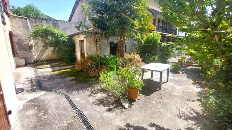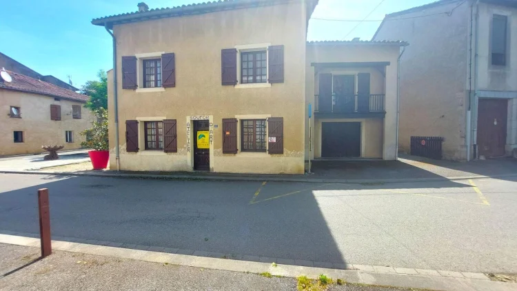 Located in Encausse Les Thermes, large village house of approximately 147m² of living space, on 2 levels, on a plot of 195m². On the ground floor, it consists of: an office, a kitchen, a toilet and a double living room of 27m2 which today serves as an art gallery for the owner. On the 1st floor you will find: 3 bedrooms, one with shower room and toilet, a large living room of 23m2 with insert and balcony, a bathroom with toilet. Little extra, 70m2 of convertible and bright attic thanks to the 4 VELUX windows. The property also offers two outbuildings: a 27m2 garage and a 21m2 workshop in the garden, with fireplace and sink. – Energy Class: F Agency fees included, but payable by the purchaser.