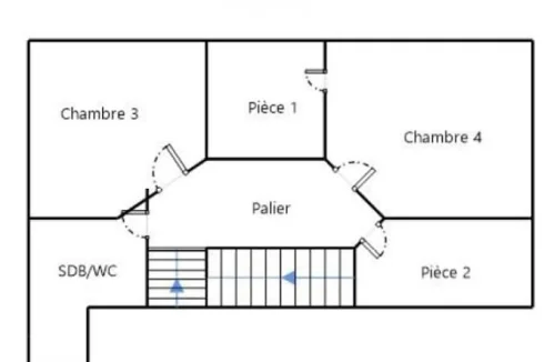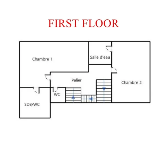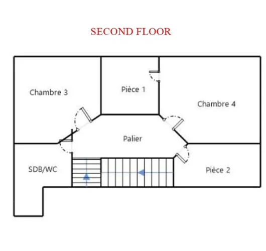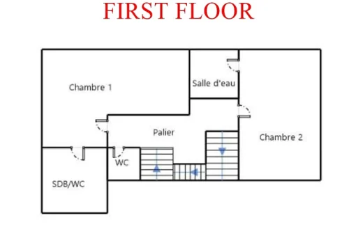First floor : landing(4 sqm) with wood flooring, 2 large bedrooms(19;21 sqm) with wood flooring(one with an ensuite bathroom, sink and a toilet), shower room with a sink, toilet with a washbasin.