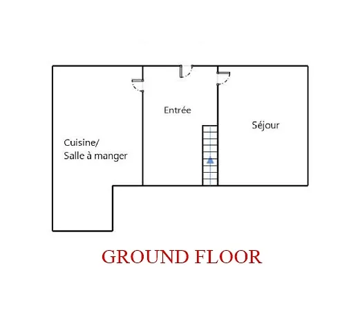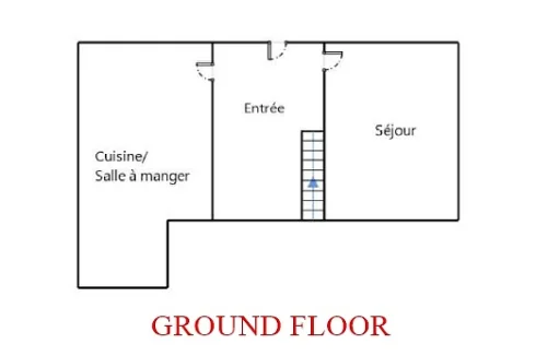 Ground floor : living room/kitchen(30 sqm) with tiled flooring.