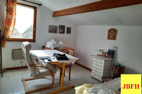 First floor : landing(5.1 sqm) with tiled flooring, 2 bedrooms(15.9;9.6 sqm) with tiled looing and sloping ceilings.