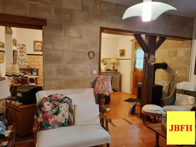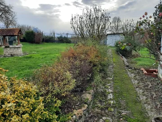 Detached stone and tiled "former railway" property(131 sqm) divided into 2 parts, situated in a rural spot in a peaceful setting, in the area of Paizay Naudouin, with an enclosed garden area of 701 sqm. Heating : electric central(also used to heat the water) and wood. Garage(45 sqm). Well. Open shed. Tax fonciere : 727 euros per year. DPE : F - GES : C.