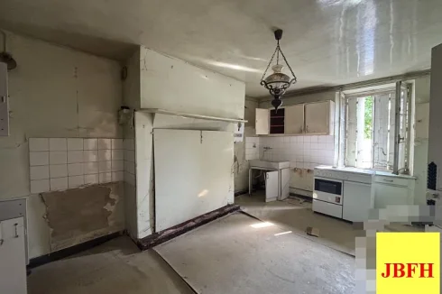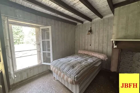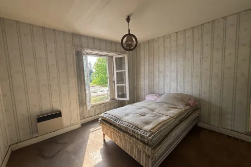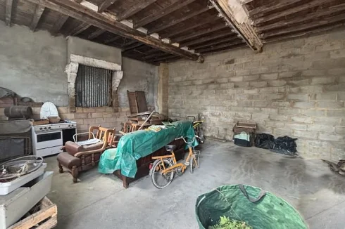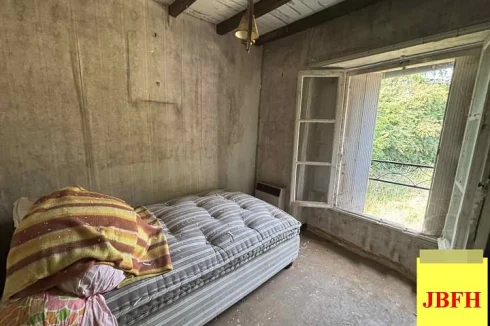 Semi-detached stone and slate property(64.42 sqm), situated in a village not too far from the shops, in the area of Ceauce, with an enclosed garden area of 900 sqm. Heating : wood. Single glazing. Double garage attached. Outbuilding. Tax fonciere : 550 euros per year. Water and electricity but re-wiring and new plumbing needed, roof will need checking, renovation needed for inside.