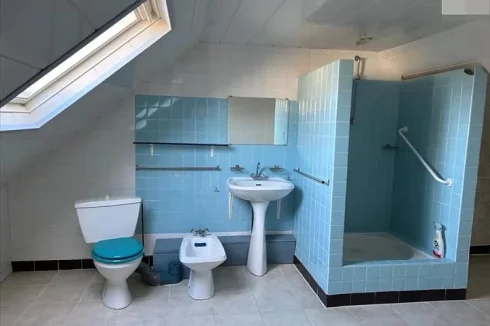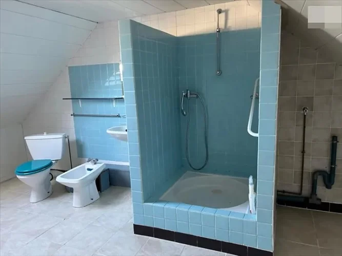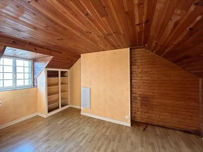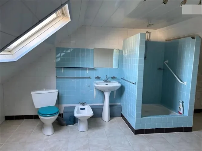 First floor : landing with wooden floor, 2 bedrooms with sloping ceilings and laminate flooring, tiled shower room with a wash hand basin, bidet and a toilet.