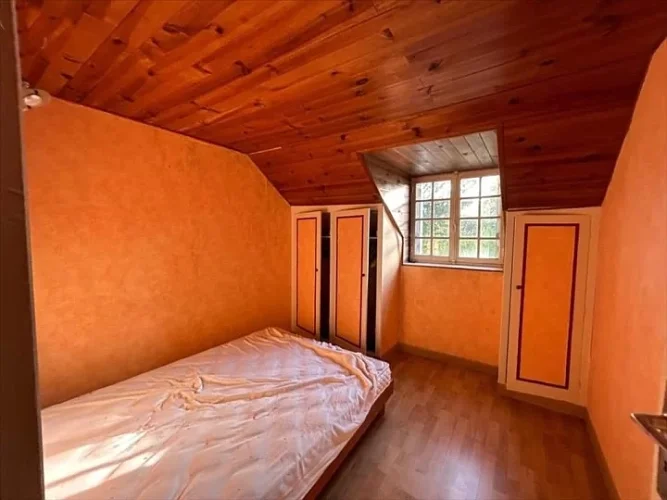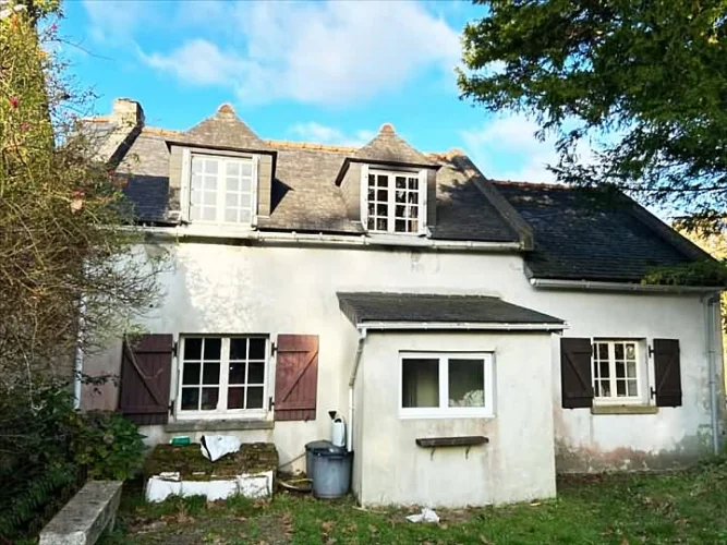 Stone and slate property(50 sqm), situated in a rural spot in a peaceful setting, in the area of Huelgoat, with a garden area of 487 sqm attached to the house. Heating : wood via the fireplace so no DPE and GES needed. Stone outbuilding. Works needed : kitchen, rewiring, central heating, modernisation and decoration. The property is less than 2 kms of a village with shops.