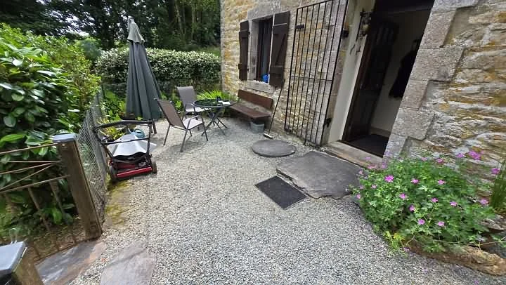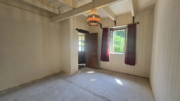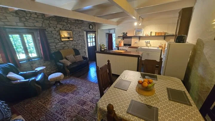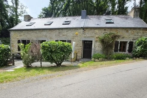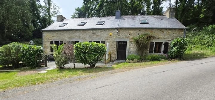Detached stone and slate property(77.28 sqm), situated in a rural spot in a peaceful setting, in the area of Botmeur, with an enclosed courtyard garden area of 147 sqm. DPE : G - GES : C. Sold fully furnished.