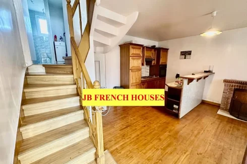 Ground floor : entrance hall(3.8 sqm), lounge/dining room/kitchen(40 sqm) with a fireplace, laminate flooring and a staircase.