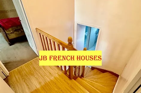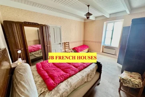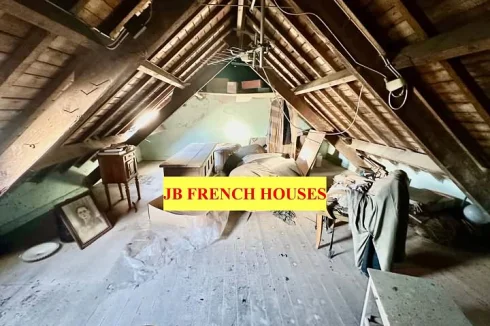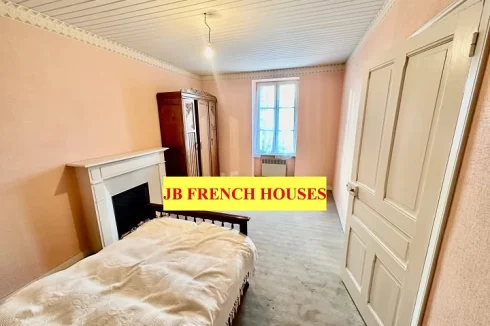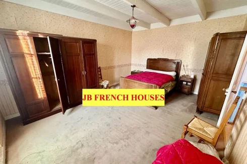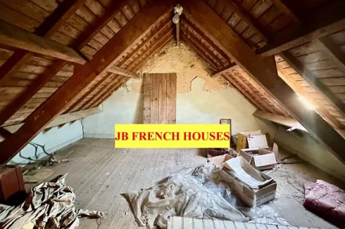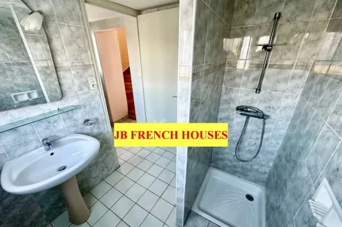 First floor : landing with laminate flooring, 2 bedrooms(15;19 sqm) with carpet flooring and exposed beams, study(5 sqm), tiled shower room(5 sqm) with a sink, toilet.