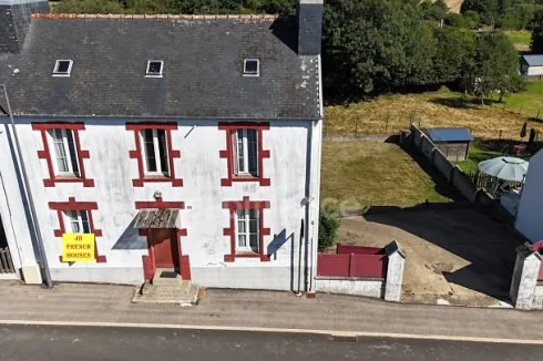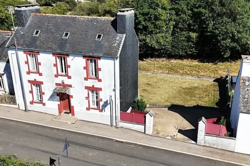 Detached stone and slate property(south facing;92 sqm), situated in a village not far from the shops, in the area of Kergloff, with a garden area of 493 sqm and a courtyard. Heating : electric(also used to heat the water) and wood. Roof in good condition. Double glazing. Septic tank will need updating. Cellar. DPE : E - GES : E.