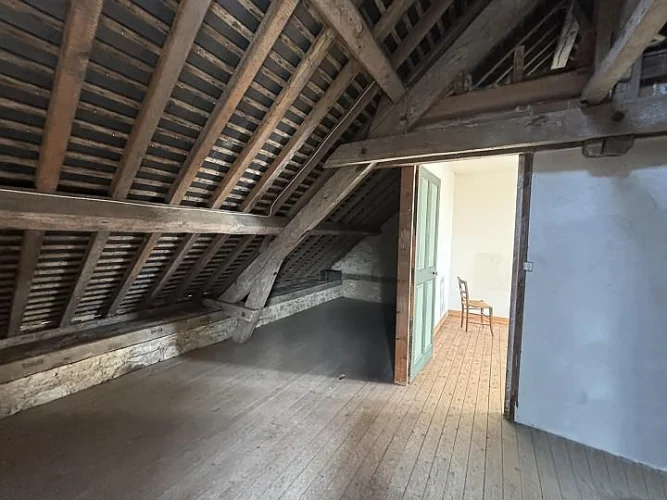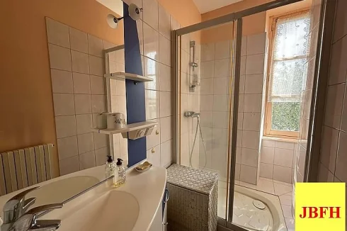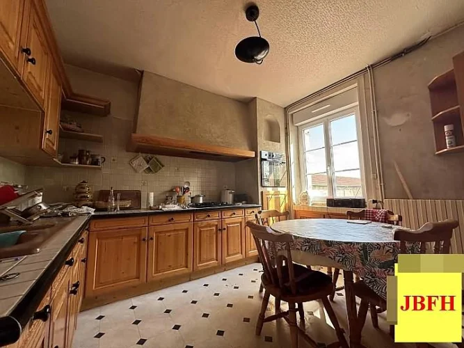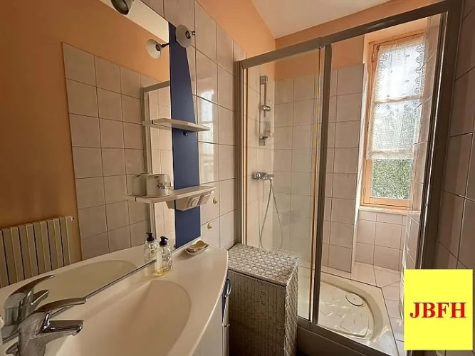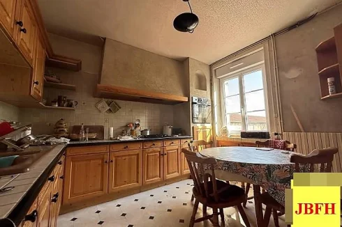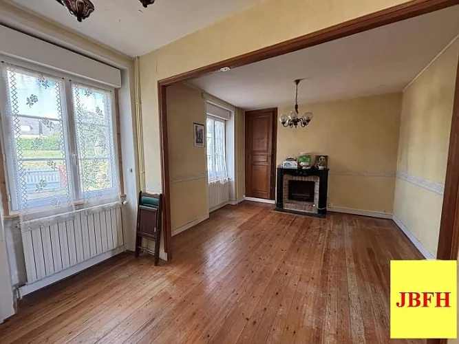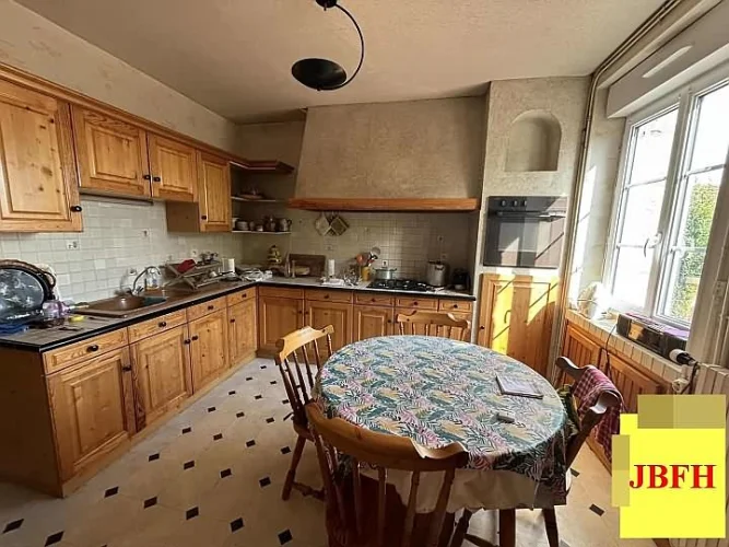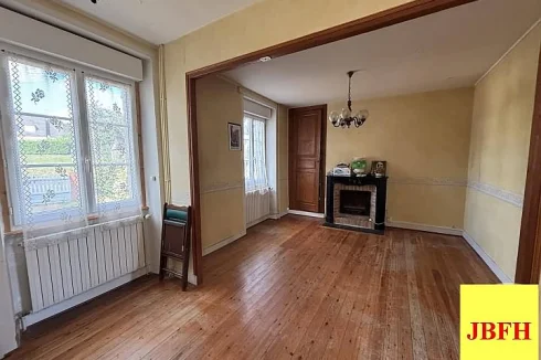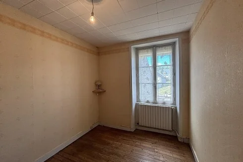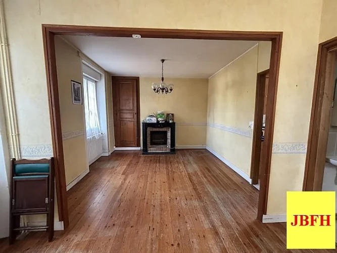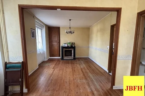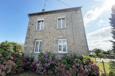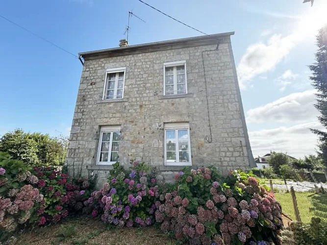Detached stone and slate property(74.08 sqm), situated in a town close to the shops, in the area of Domfront, with a garden area of 700 sqm. Heating : oil central and wood. Part PVC double glazing. Roof updated in 2020. 2 garden sheds. Cellar needing re-enforcement boiler joists. DPE : G - GES : G. The oil-fired boiler needs replacing, and some of the window frames have already been modernised with PVC double glazing and electric roller shutters. The roof was renovated in 2020.