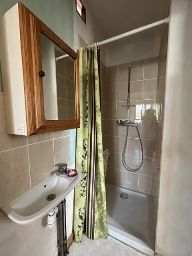 Ground floor : entrance(3.1 sqm), kitchen (11.6 sqm) with units and tiled flooring, lounge/living room(20.3 sqm) with an insert fireplace and wood flooring, tiled shower room(2.7 sqm) with a sink and a toilet.