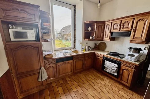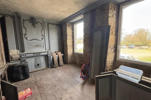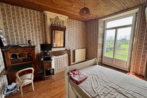 Ground floor : entrance, lounge with a fireplace and wood flooring, kitchen with tiled flooring and units, bedroom with wood flooring and doors to the garden, room to renovate with wood flooring, toilet.