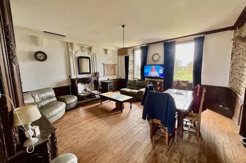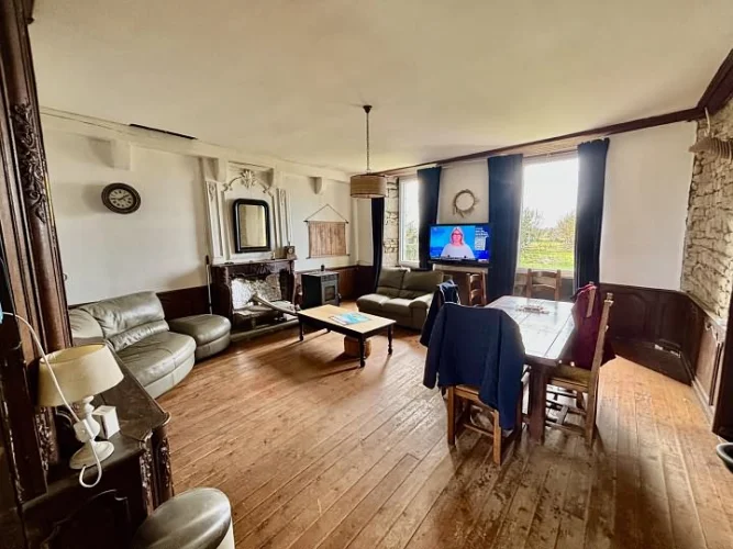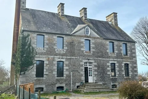Detached stone and slate character property(250 sqm), built in 1700, lies in the countryside in a peaceful setting, in the area of Le Mesnil Amand, with a land area of 23.05 acres(93 300 sqm). Heating : central and wood. Outbuildings. 2 towers. Possibility to acquire more land(140 000 sqm). DPE : D - GES : B. Still some rooms to renovate.