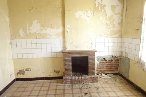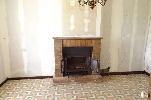 Ground floor : room with an insert fireplace and tiled flooring, room with a brick fireplace and tiled flooring, room with a fireplace and carpet flooring.
