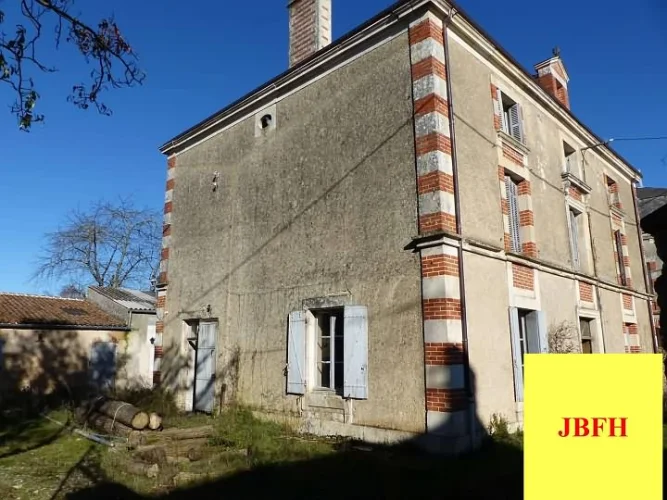 Detached stone and slate "Maison de Maitre" property(205 sqm), built in 1860, situated in a village not far from the shops in the area of Thenezay, with an enclosed garden area of 1 158 sqm. Ancient stable. Barn. 2 offices. Vaulted cellar. Possibility to buy a workshop(220 sqm). Works needed : new kitchen, floor, bathroom, re-wiring, modernisation and decoration.