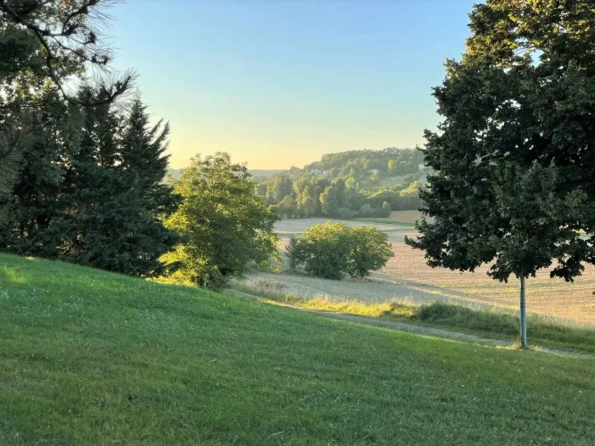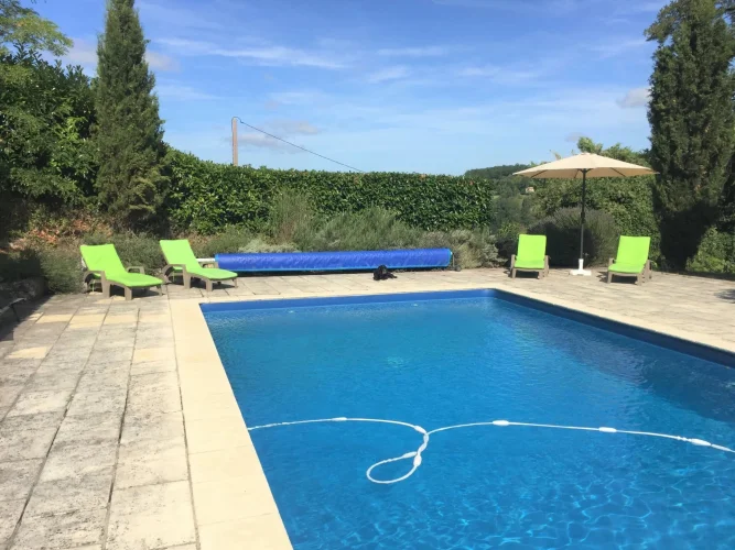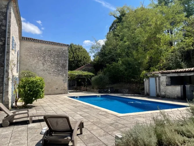 The grounds of 13ha 79a 01ca (woodland and meadows) on the hillside include a 10 x 5m heated swimming pool with oil-fired boiler, a swimming pool shelter, a 92.5m² cartport with wood storage space, well and spring.