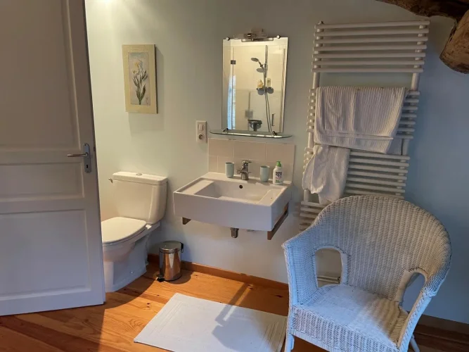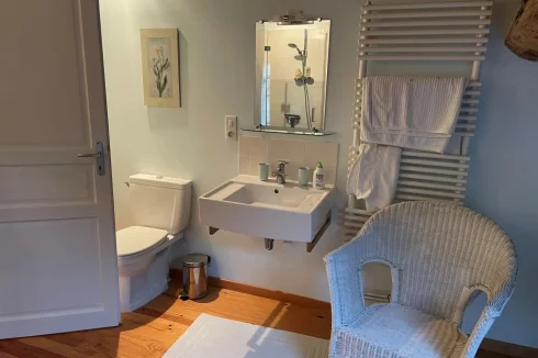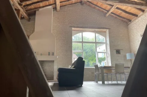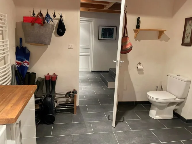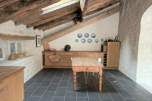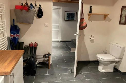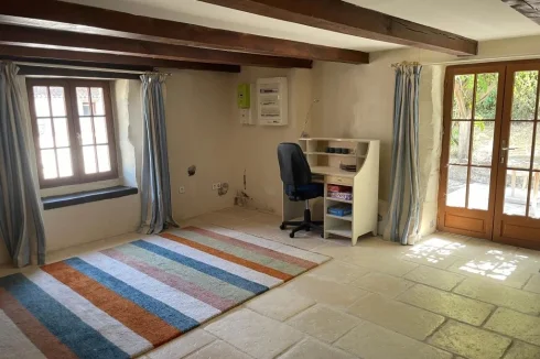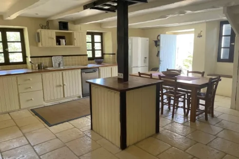 The original house. It comprises, on the ground floor, a kitchen/dining room, a large living room with fireplace and French doors opening onto the terrace and swimming pool, a utility room/WC and a living room/playroom.The original wooden staircase leads to a room/large landing leading to 3 bedrooms with fitted wardrobes, a shower room/WC, a landing, a separate WC and a bathroom.