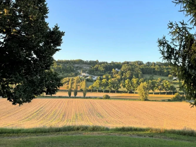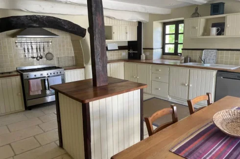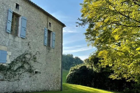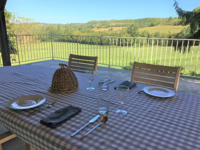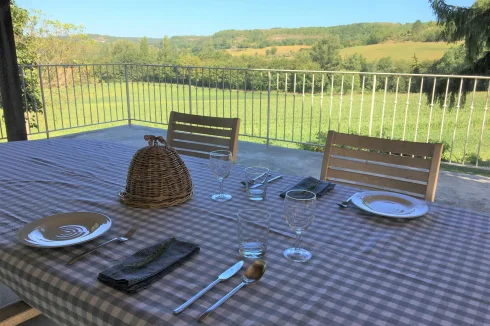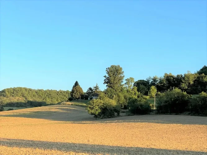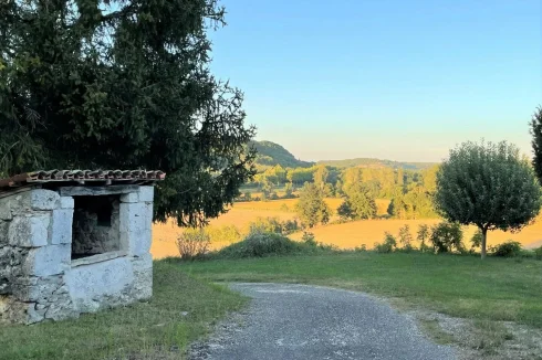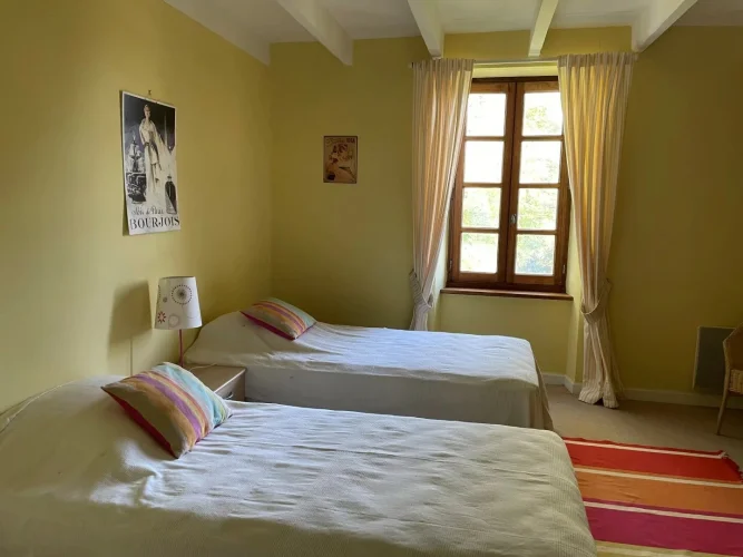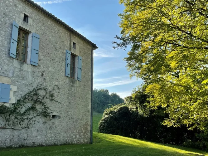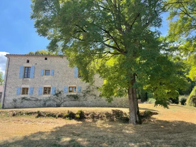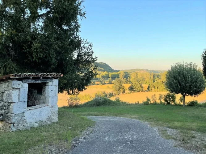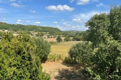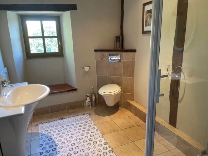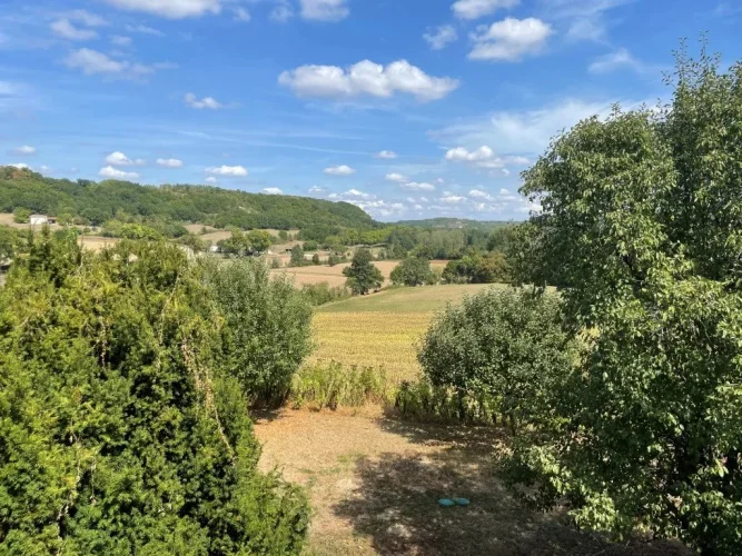 Superb views over a valley from this old farmhouse, completely renovated around a courtyard, nestling in the greenery on the side of a valley with no neighbours and close to the shops.