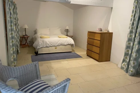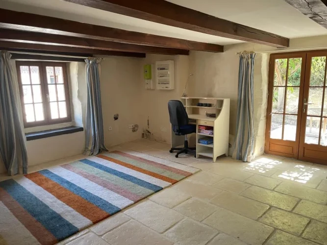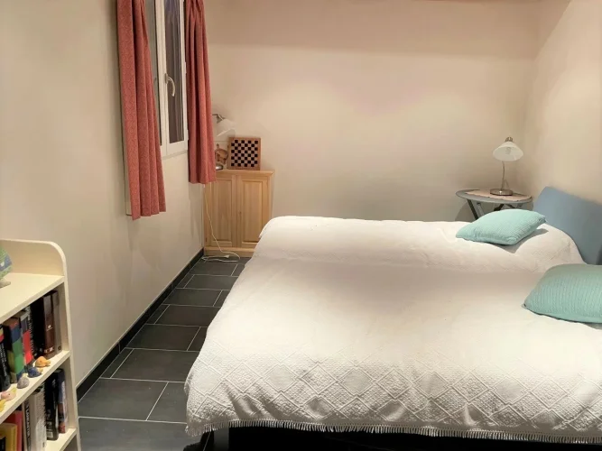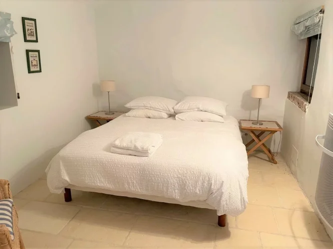 Stone building renovated in 2015. It comprises, on the ground floor, an entrance hall, a bedroom with French doors opening on to a private terrace and views, a shower room/WC, another bedroom, a storage room.