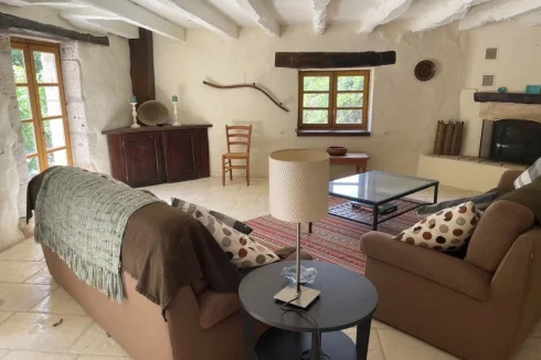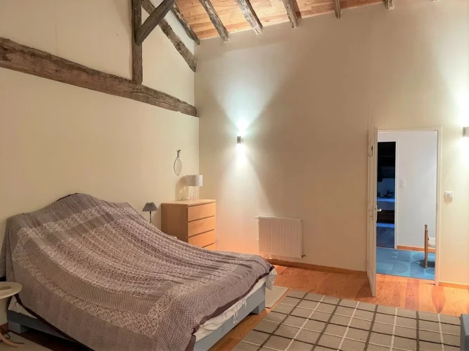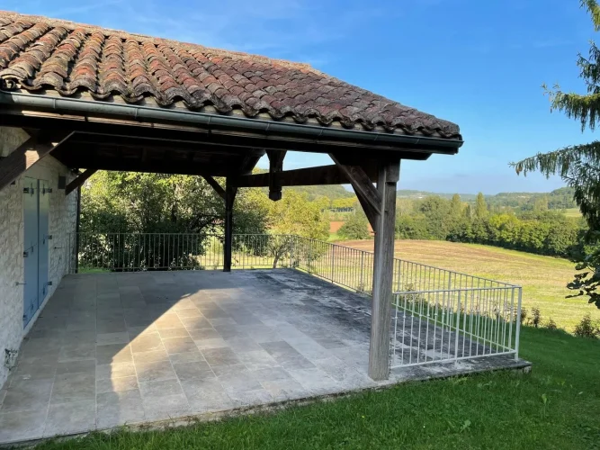 Barn renovated and converted into a house in 2009: On the ground floor, it comprises a fitted kitchen and door opening on to the courtyard, a large archway leading to the lounge with fireplace and French windows opening on to the covered terrace with dominant views. Upstairs, a landing leads to a bathroom with WC, 2 bedrooms, one of which is an attic room with pine parquet flooring. A staircase leads down to an entrance hall on the lower level, which gives access to a shower room/laundry room/WC, a cellar with electric panel, and a corridor leading to 2 further bedrooms.