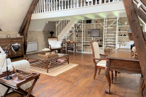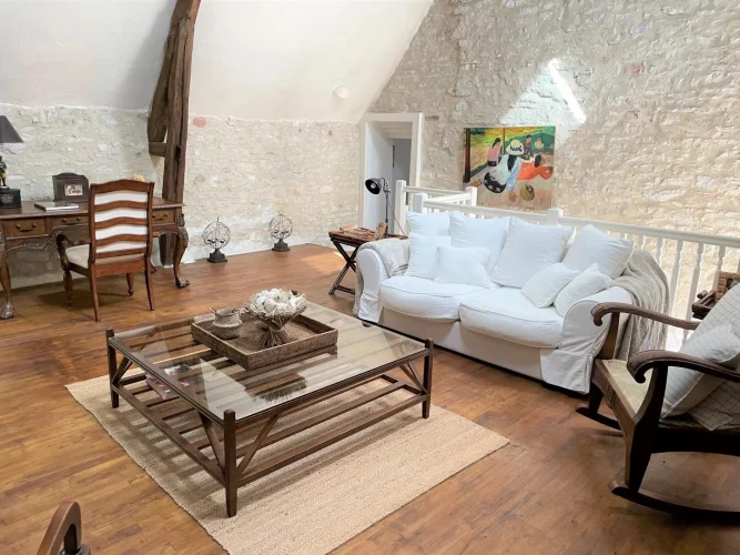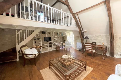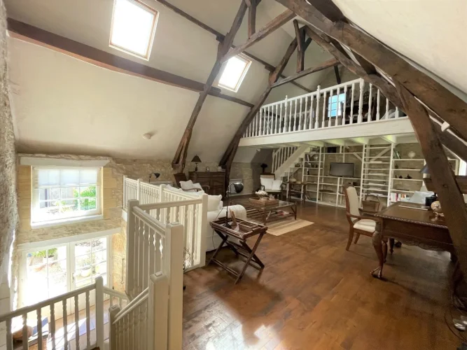 On the 1st floor, you will find a living room/mezzanine with staircase leading to the study/mezzanine, a landing, a bedroom, a shower room/WC and a large bathroom with bath, shower and dressing area.