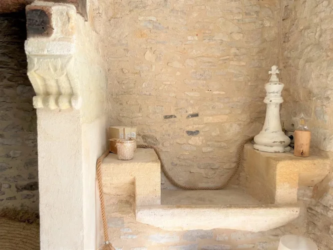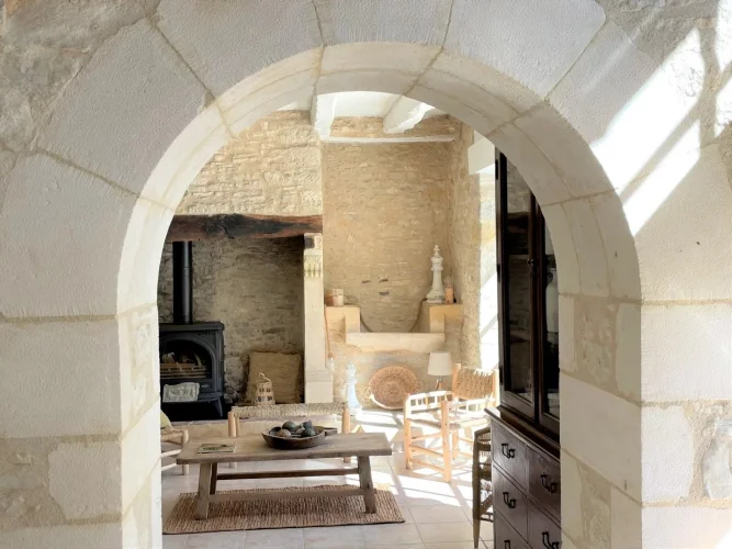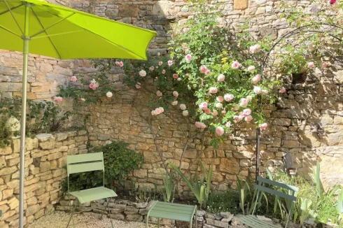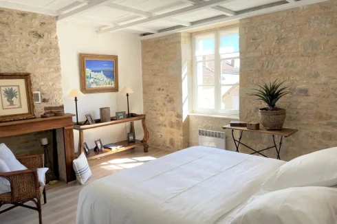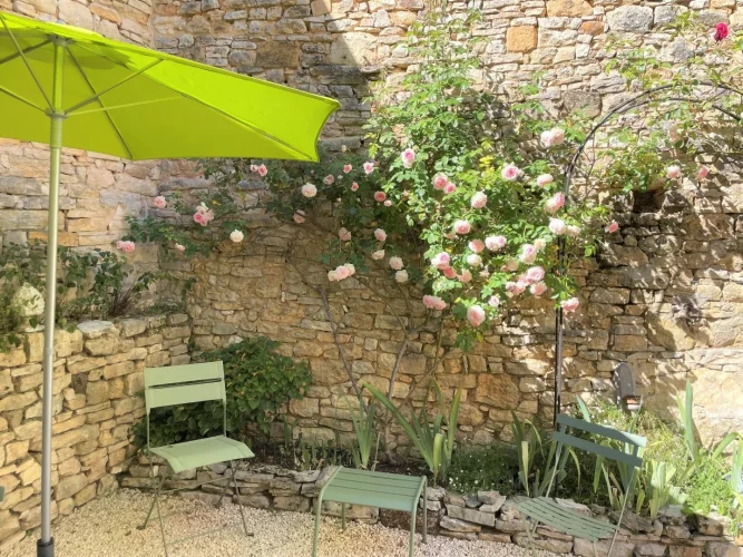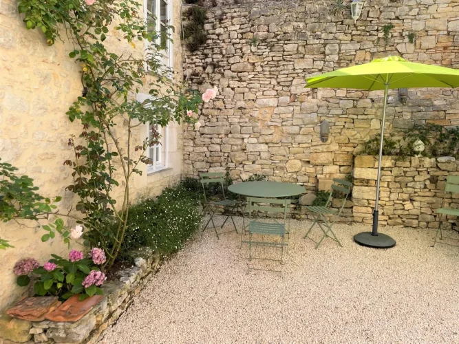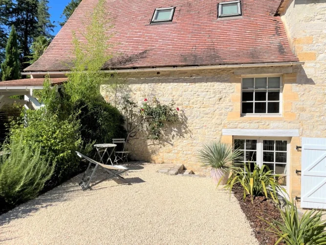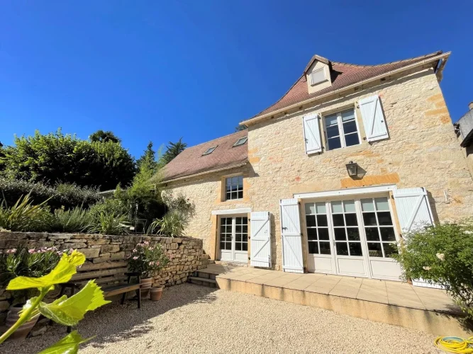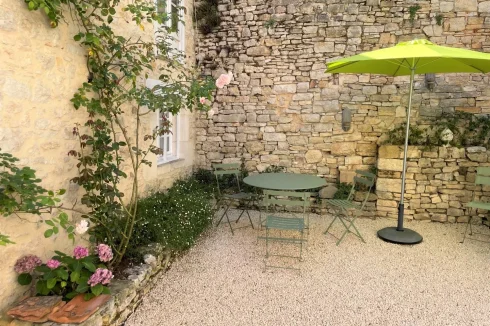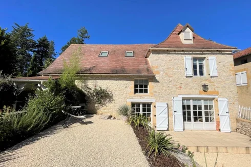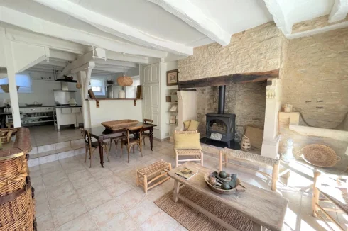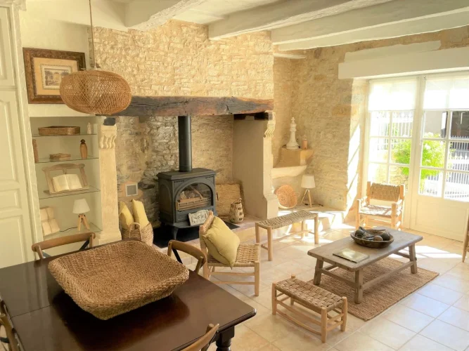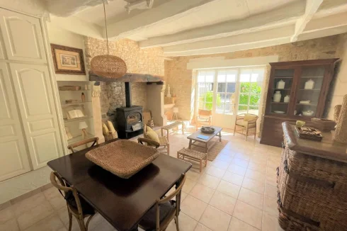 Situated in the Lot, in a charming village with all amenities and weekly market, very attractive and spacious renovated stone village house (former forge) of approx. 209m2 with 2 gardens, off-street parking and grounds of approx. 332m2.