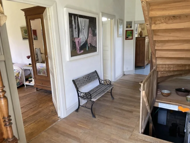 Main house (1865): SH 130 m² + convertible attic and cellarsThe living area is accessed from the courtyard: the rooms are bright and have high, insulated ceilings.Entrance hall (15 m²) with staircase; Kitchen (31.4 m²) with fireplace and wood burner, kitchen cupboards and oak parquet flooring. Bedroom (20.35 m²) with poplar parquet floor. Sitting room (28 m²) with French doors to garden. Bathroom (13.5 m²) with bath and shower, bidet, washbasin and WC. Storage room (3 m²). Bedroom 2 (18.3 m²). Heating: wood-burning stove.The staircase from the hall leads to the attic, which can be converted into the entire surface area of the house. A staircase leads down to the large cellars, accessible from the outside via a large double door.Cellar (79 m²). Hot water tank. Cellar/workshop/garage (36.75 m²) with circuit breaker.