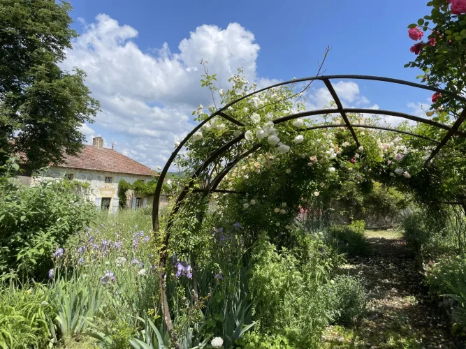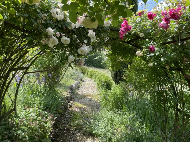 This group of 3 houses is set around an inner courtyard and offers a wealth of possibilities. It benefits from a large garden of 5514 m², with a pretty tunnel of climbing roses and an orchard. Views over the surrounding countryside.