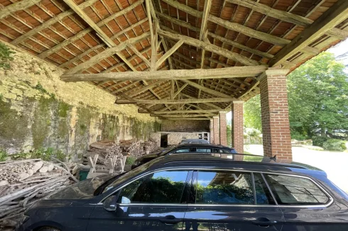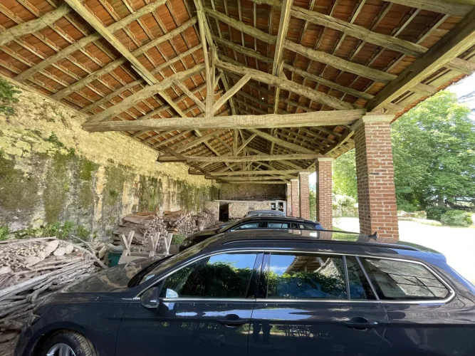 Large hangar (154 m²) with tiled roof. Carport and storage space.