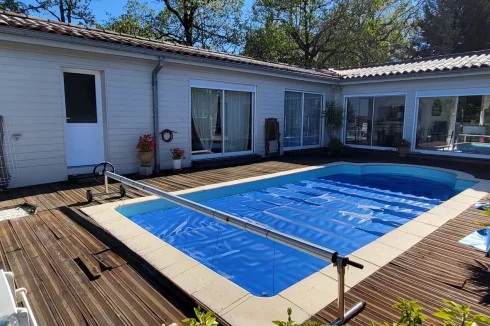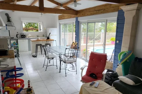 Built in 1978 on a plot of 2600 m², our agency offers you this beautiful house of more than 160 m² of living space and its outbuilding of 70 m² with swimming pool. The house consists on the ground floor, of a recently renovated independent kitchen of 15 m², a dining / living room of 40 m², 2 bedrooms of 15 and 13 m², a bathroom with shower and bath as well as a a separate toilet.Upstairs, a mezzanine overlooks the living room with a small lounge area, 2 bedrooms and a bathroom with toilet complete this level.The house also has a a garage space of nearly 120 m² inside and 50 m² outside. A few steps from the house, an outbuilding built in 2015 with large living room, 2 bedrooms, bathroom water, wc and swimming pool awaits you.