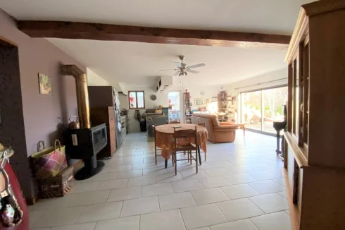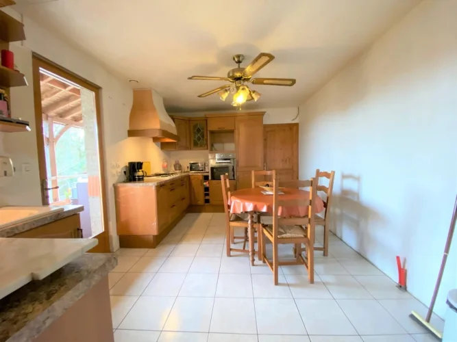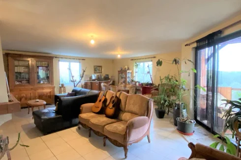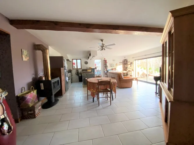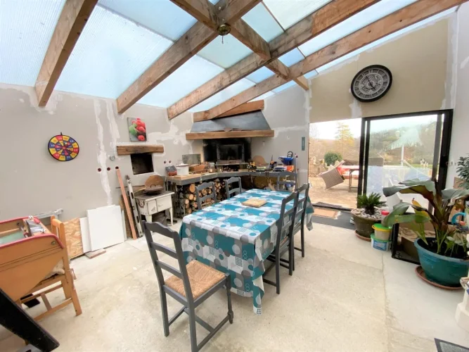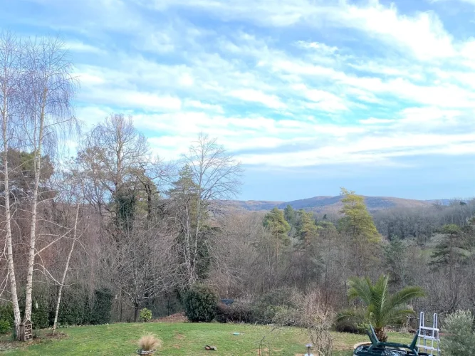 Recent house to be finished with a living area of approximately 235 m² on nearly 5850 m² of land with magnificent views, 3 minutes from a village with all shops. This house offers on the ground floor, an entrance leading to a large living room of more than 45 m², a semi-open kitchen opening onto the 40 m² terrace, a bathroom, 3 bedrooms, one with adjoining bathroom, toilet, pantry and laundry room. . On the garden level, an entrance leads to the dining room of approximately 42 m² and the winter garden, kitchen and pantry, large bathroom and separate toilet, 2 bedrooms as well as a double garage and cellar of approximately 94 m². This quiet house can be used as a very large family home, or allows seasonal or annual rental income by reserving one of the 2 accommodations for this purpose . Finishing work to be planned: exteriors and heating system to be connected. Great potential for this house