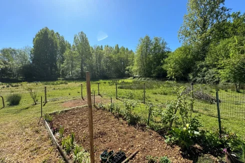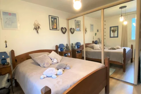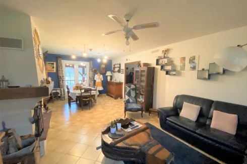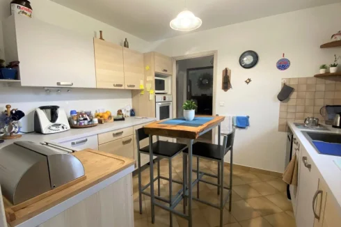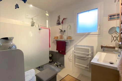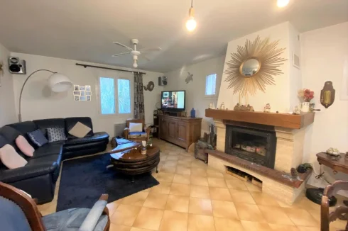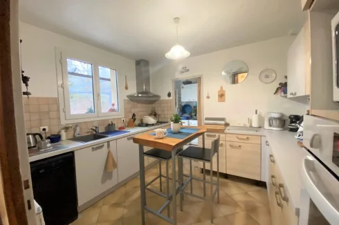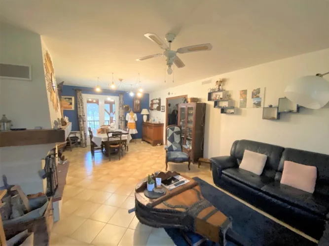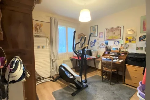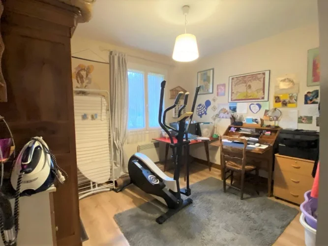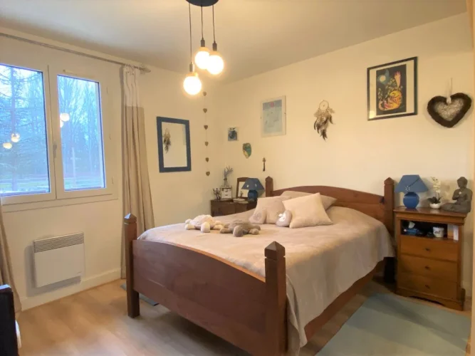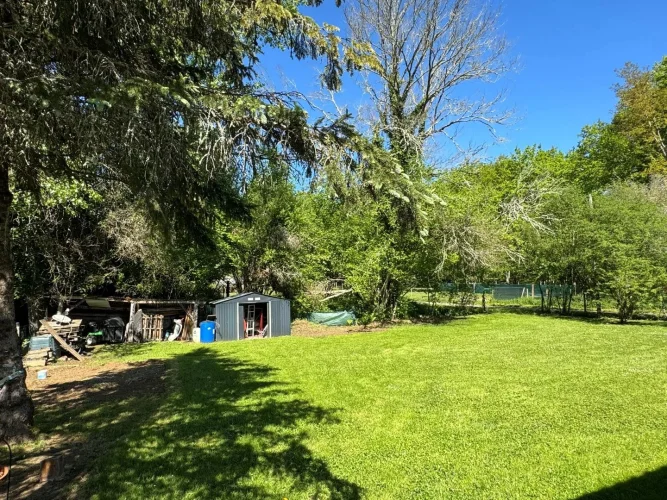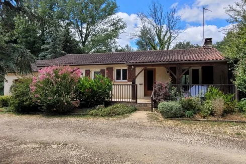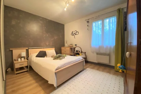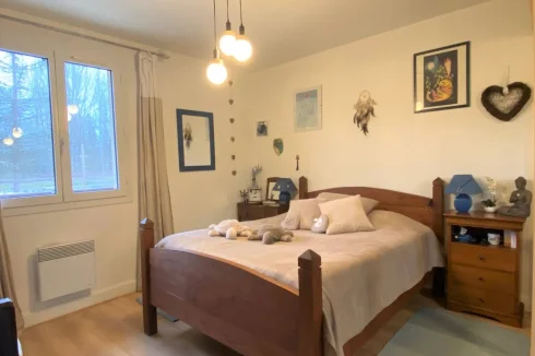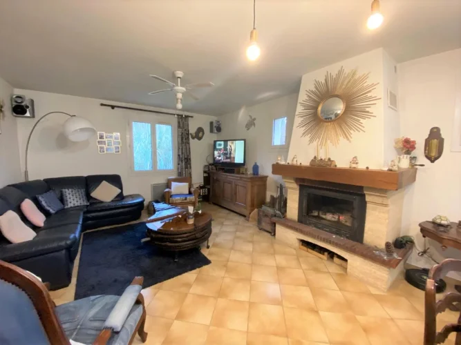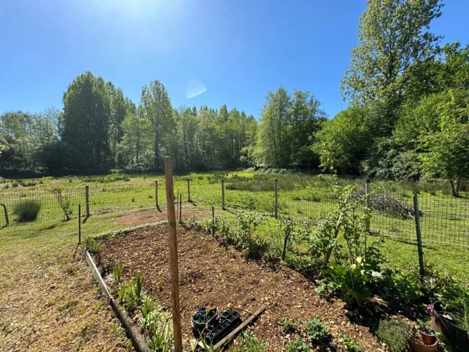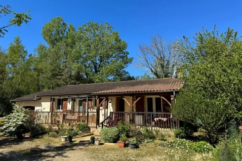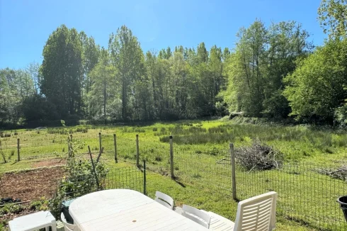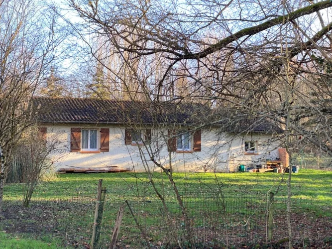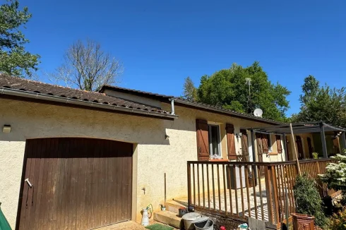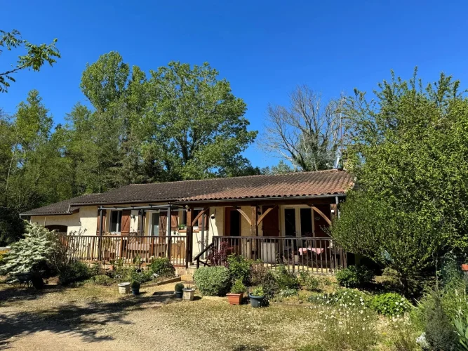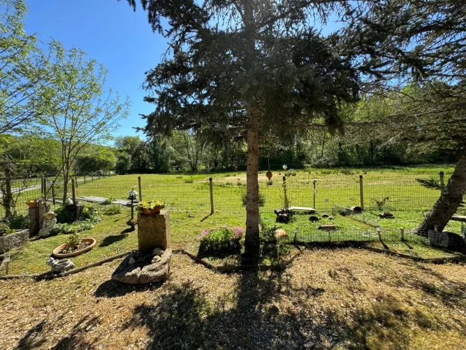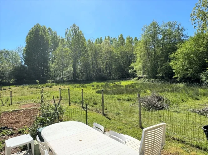 Comfortable house with garage, covered terrace and pretty garden of more than 6000 m2, close to all amenities. This house offers living entirely on one level with living room, separate kitchen, laundry room, three bedrooms, bathroom and toilet. Electric heating, fireplace with insert. Peaceful and calm environment, while being close to shops on foot.