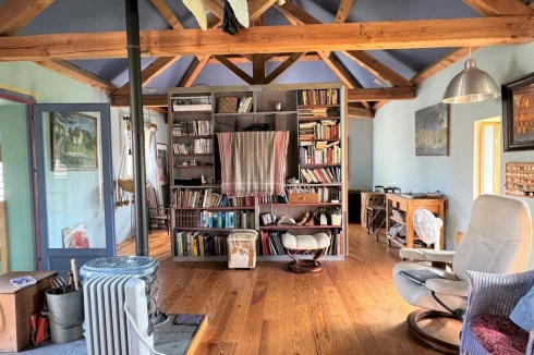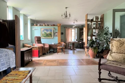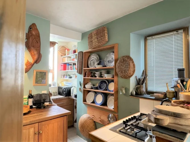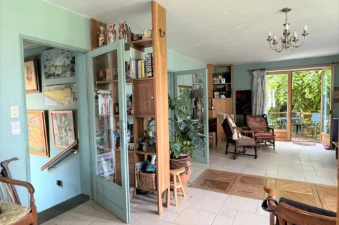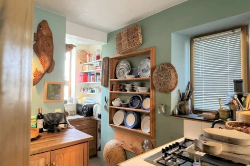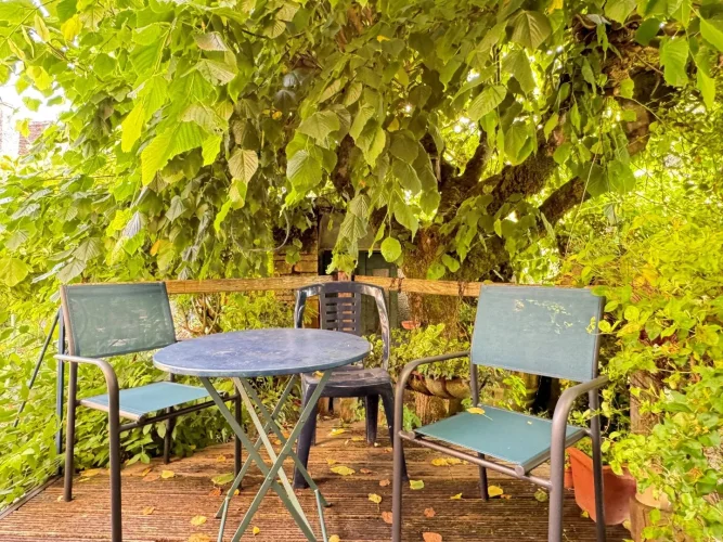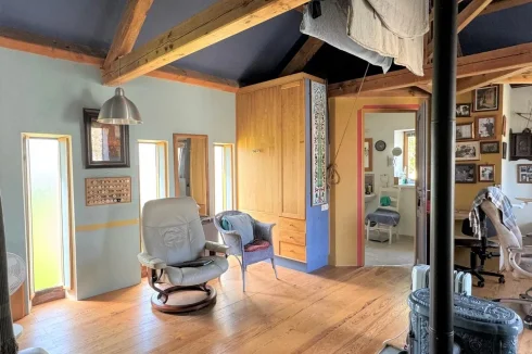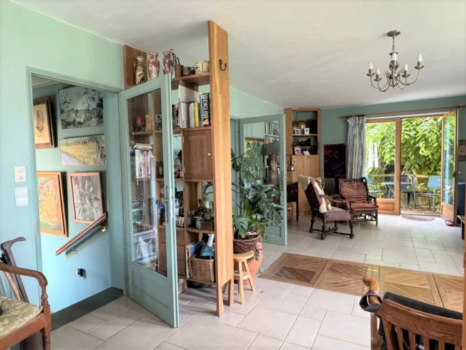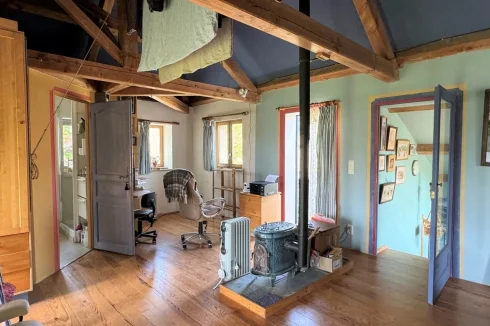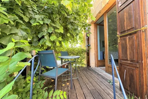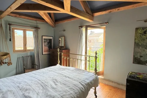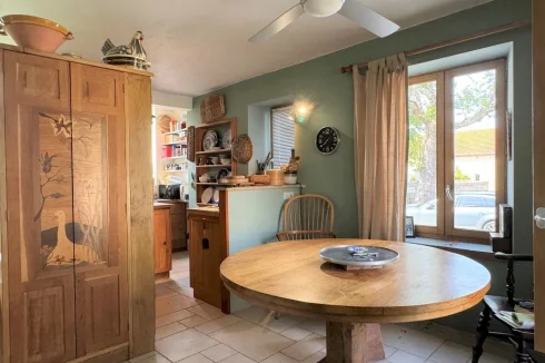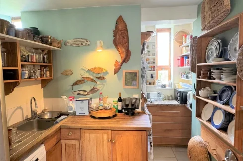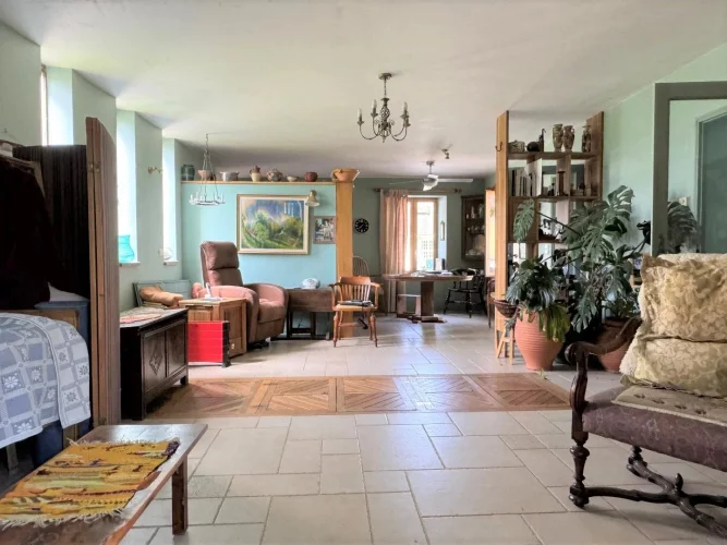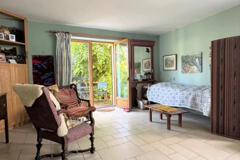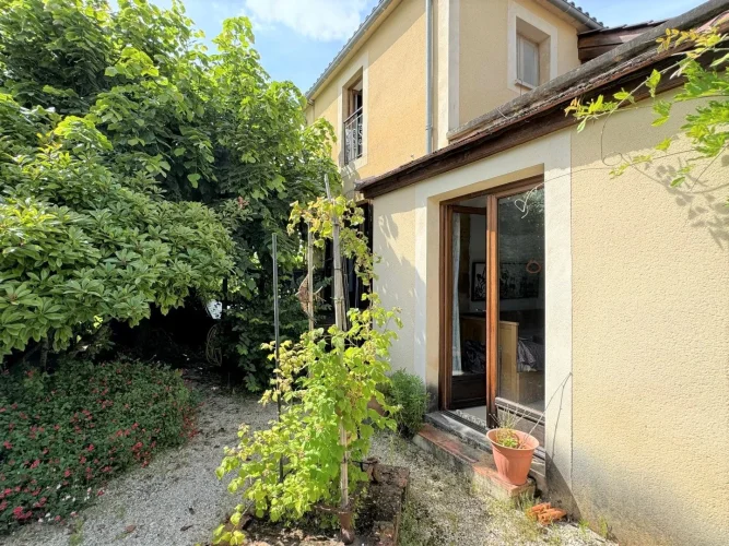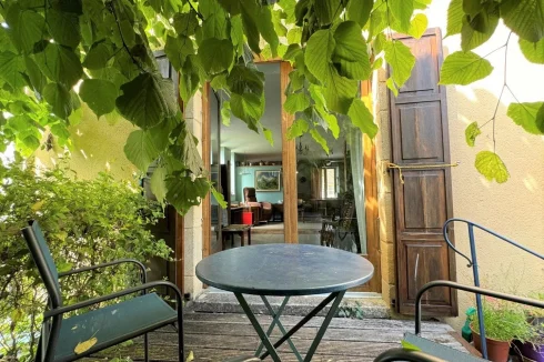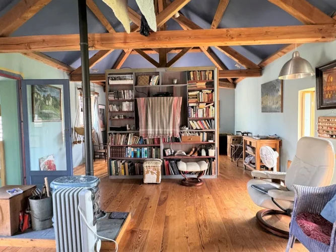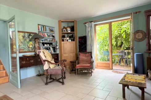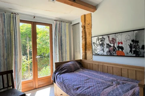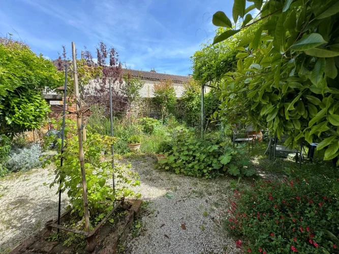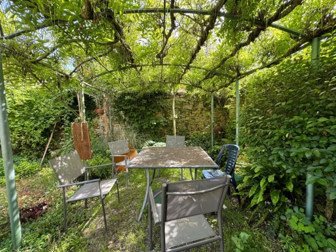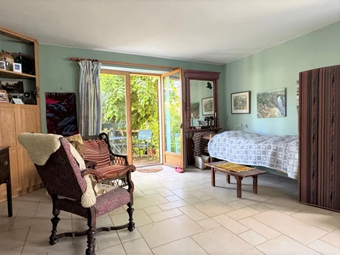 Charming stone village house with pretty garden and courtyard entirely enclosed by stone walls, stone barn and wooden workshop. On the ground floor, the entrance leads to a laundry room/technical room, a bedroom/office opening onto the outside, a bathroom/WC. A few steps give access to the large living room with open kitchen and access to the small terrace and the garden. Upstairs, bedroom, office space opening onto a terrace and which can be partitioned off if necessary to create a private bedroom, shower room/WC Gas heating on the floor, wood stove upstairs and water heater connected to solar panels. Lots of charm, warm interior with numerous custom-made wooden elements, intimate courtyard, artist's studio, grangette are all assets for this house a stone's throw from all the shops.