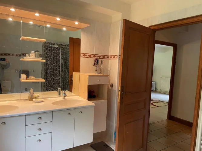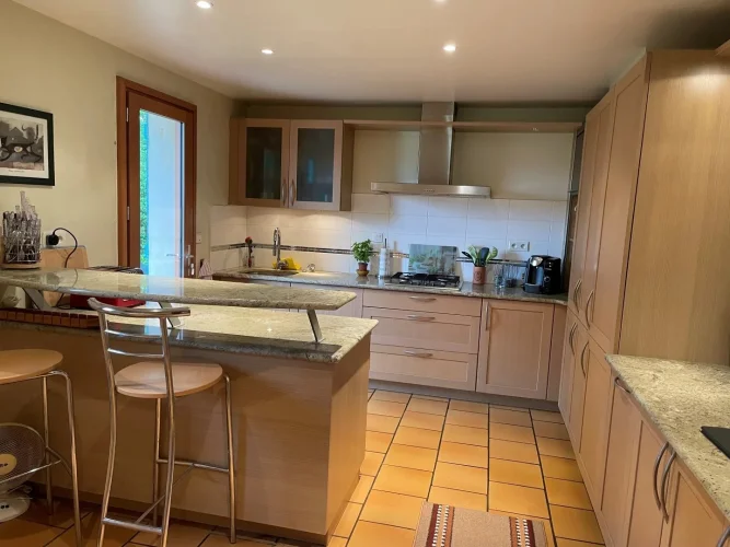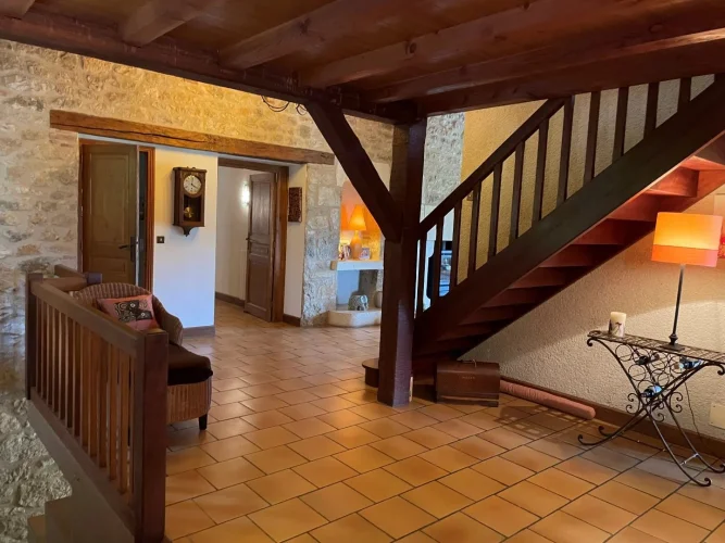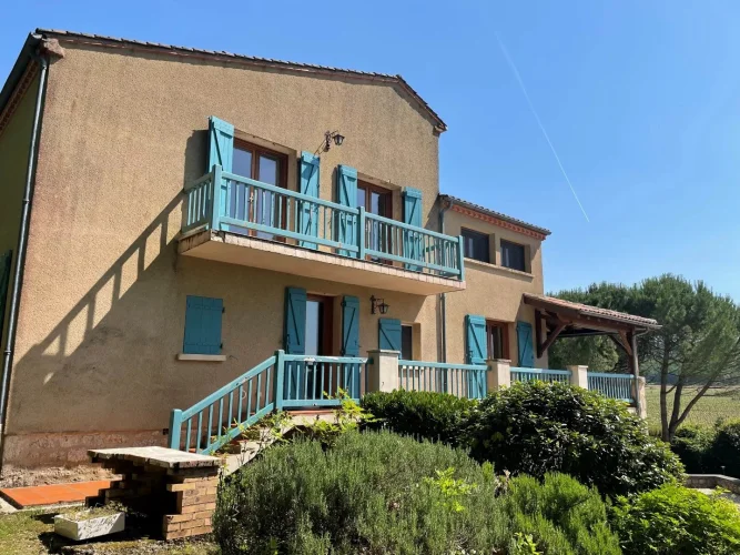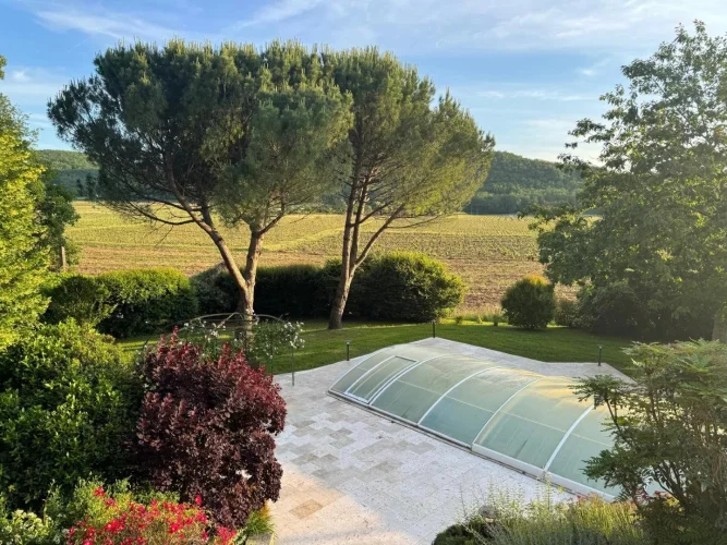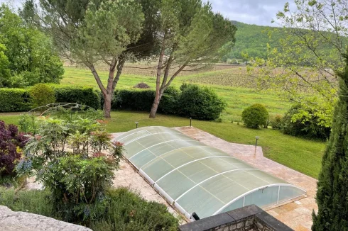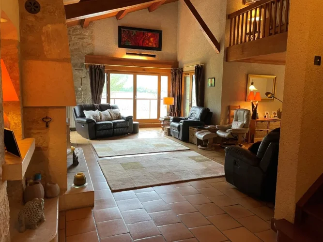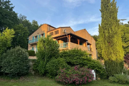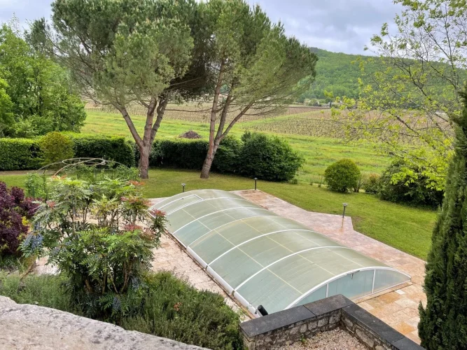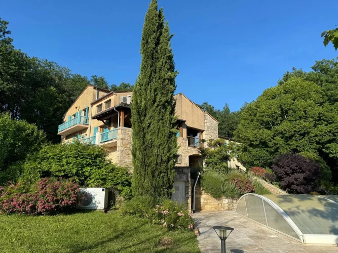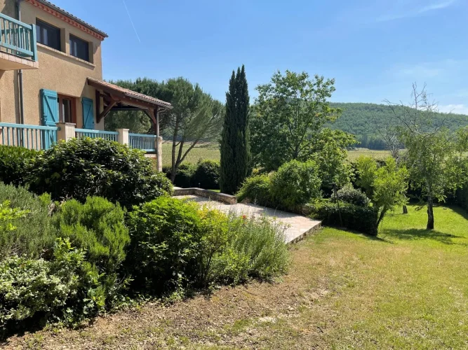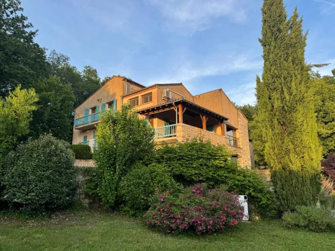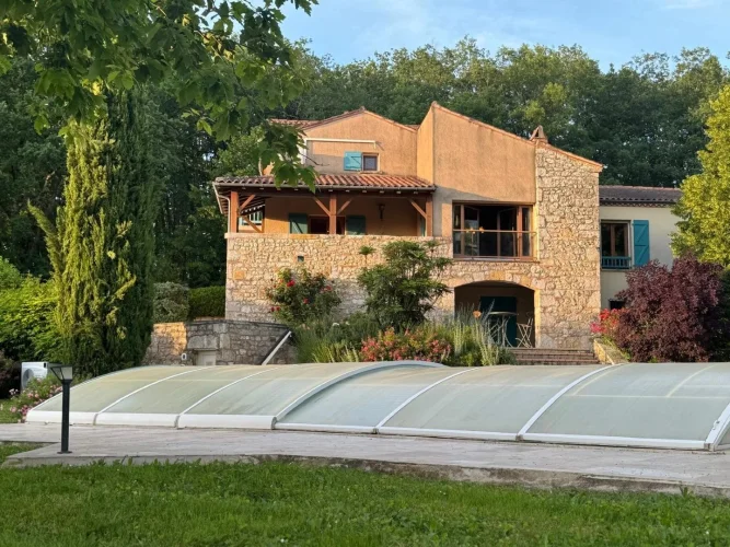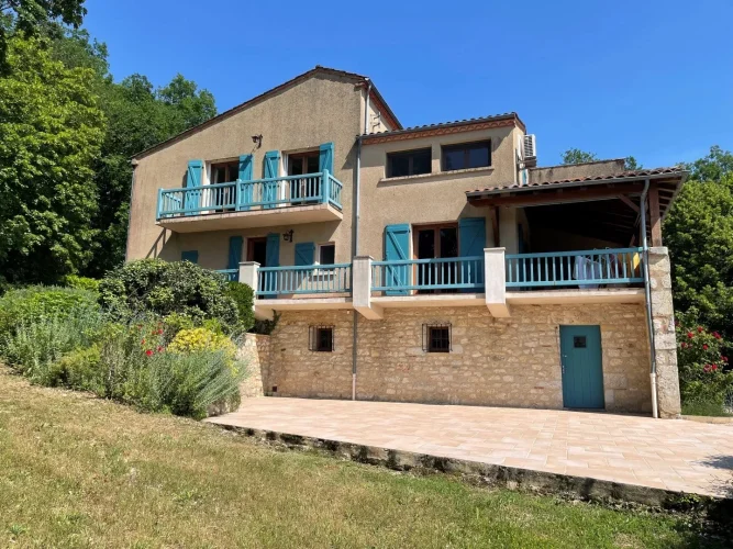 Beautiful family home in the Lot valley with swimming pool, a stone's throw from Puy-l'Evêque, in an exceptional tourist setting with lovely views over the surrounding countryside.Built in the traditional style and partly in stone, it offers approx. 360 m² of living space over 3 stories.The ground floor comprises a vast entrance hall leading to a large living room with fireplace, a fitted kitchen with access to the outside terraces, a pantry, a spacious master suite with its own private terrace, a study, a bedroom and a shower room/toilet.The first floor comprises a mezzanine with a seating area overlooking the living room, three bedrooms, shower room and toilet.The garden level features a huge games room, a shower room with toilet, a wine cellar, a workshop, a boiler room and a large entrance hall, part of which could be converted into an independent dwelling.Double glazing, mosquito nets, quality materials, air conditioning and water softener are just some of the features that this house has to offer.Lovely, very private, wooded garden of over 3,700 m², with good-sized heated swimming pool with Roman steps and plunge pool, and lovely views over the surrounding countryside.This house is ideal for a large family, and is only five minutes from Puy-l'Évêque, one of the most beautiful villages in the region, nestling on the banks of the River Lot. You will enjoy a sought-after tourist location, with its medieval bastide towns, famous Cahors vineyards, hiking, horse-riding and a host of other activities.