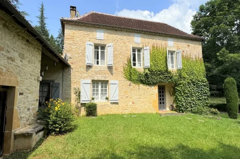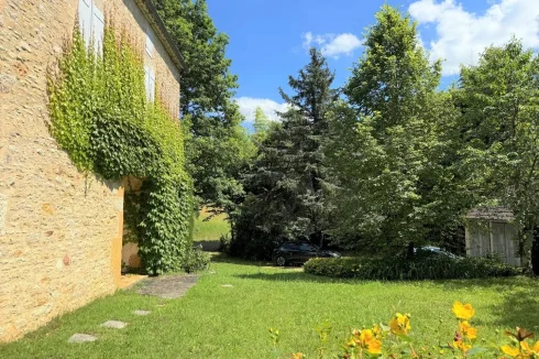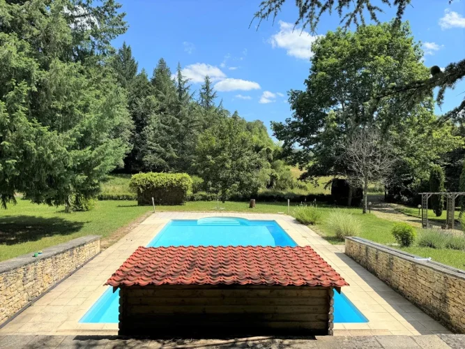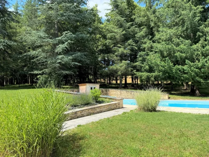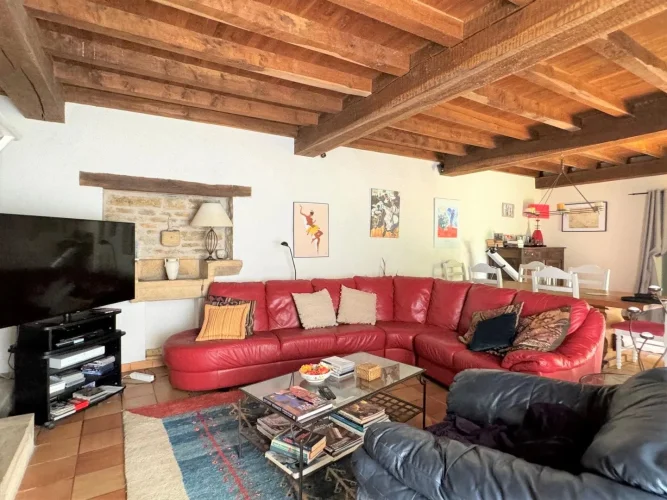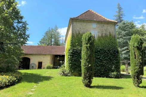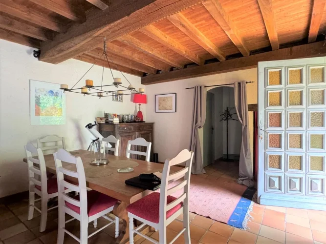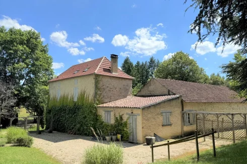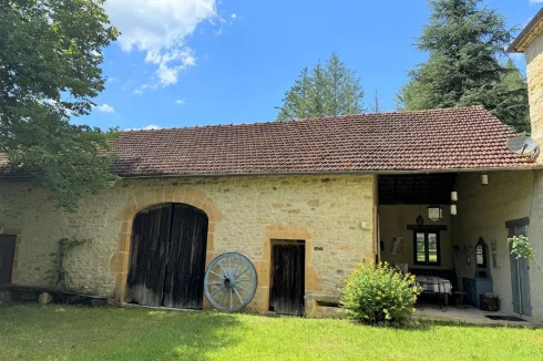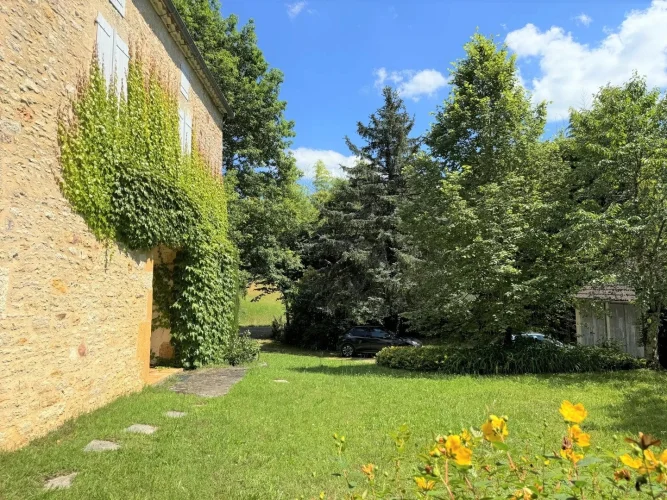 Beautiful stone ensemble, with main house, barn, swimming pool and triple garage on 1.2 ha of land and 5 minutes from a village in Bouriane with all amenities. The house offers on the ground floor a large dining kitchen with direct access to the covered terrace, a utility room, a spacious living room with a wood stove, bathroom and toilet. The staircase leads to the first level with three bedrooms, shower room and toilet, and the last level houses an office and a master suite with dressing room and bathroom. A stone barn with a floor area of 83 m², allows the creation of a second level if necessary. Triple independent garage. 12x6 m swimming pool, all on pretty 1.2 ha partly wooded land. This charming ensemble with harmonious proportions offers a pleasant living environment.