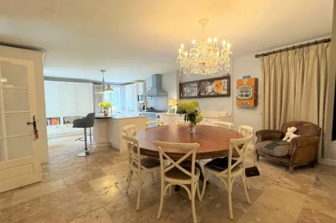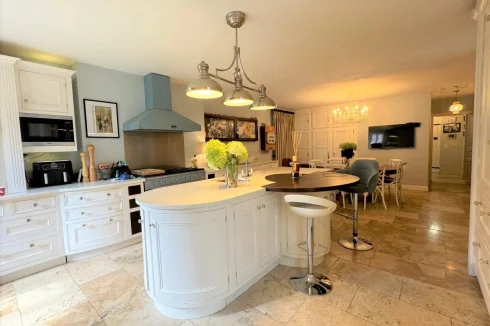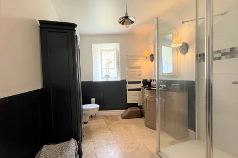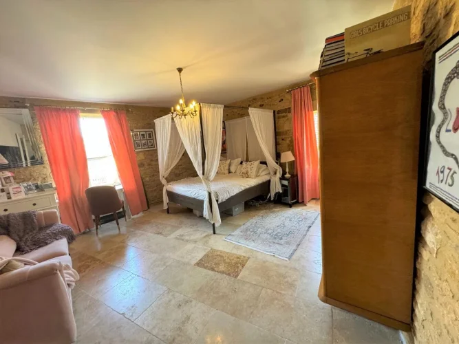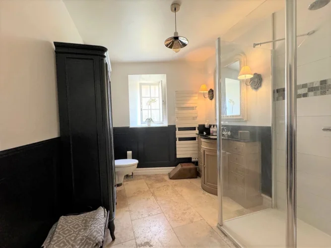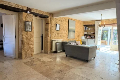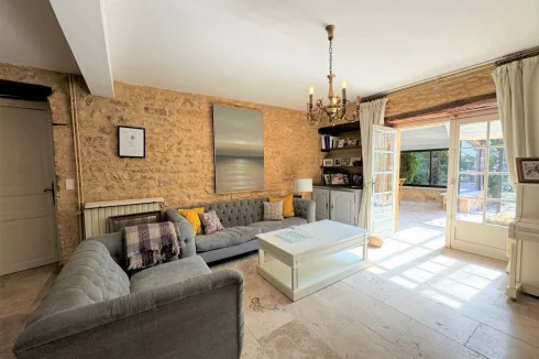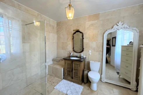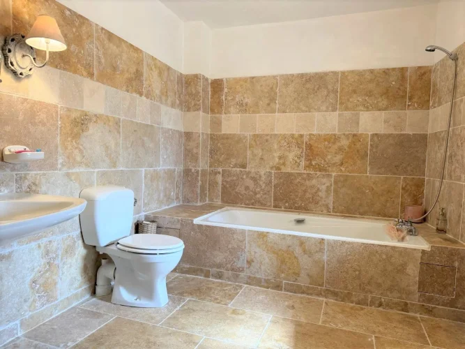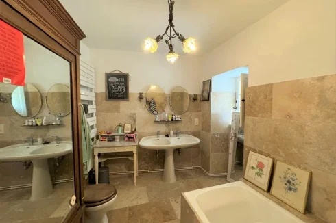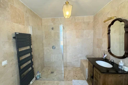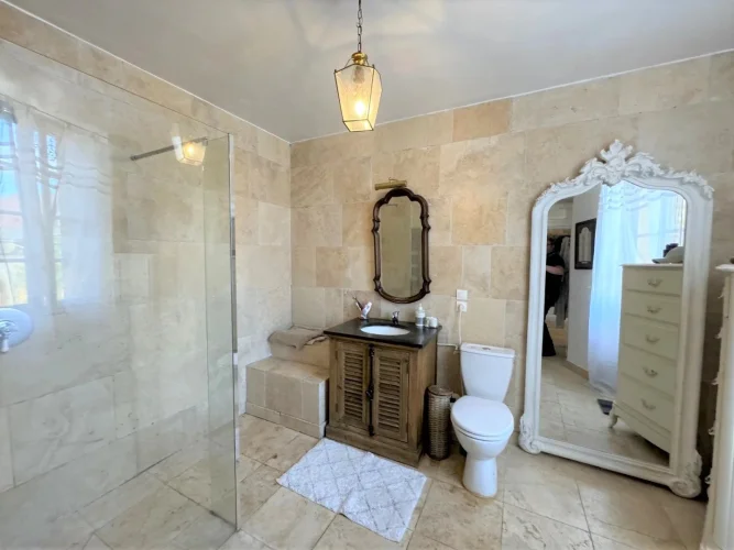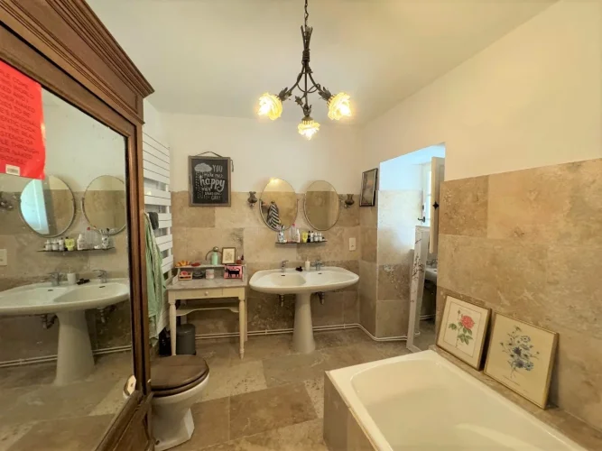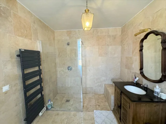 This beautiful spacious house offers on the ground floor an entrance, large fitted kitchen and dining room, 2 living rooms, a bedroom, a shower room, large veranda, laundry room and toilet. The first floor includes 3 bedrooms including 2 master suites and an office, and on the 2nd floor, a large TV lounge, 2 bedrooms and a bathroom. Travertine floor, fireplace, exposed beams and stone walls, electric gate, mains drainage are all assets for this house.