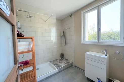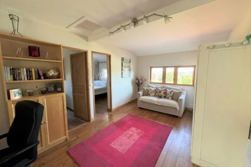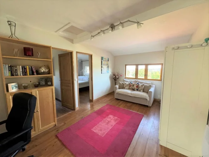 Upstairs, there is a large landing (17 m²) with office area which serves 2 bedrooms as well as the master suite of 20 m² (with private shower room).