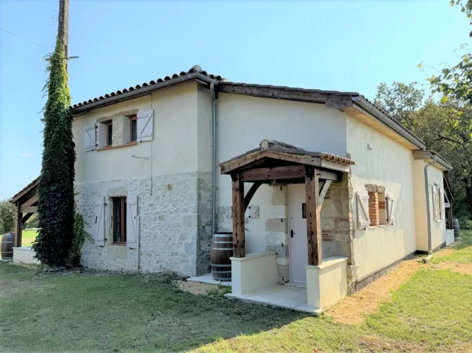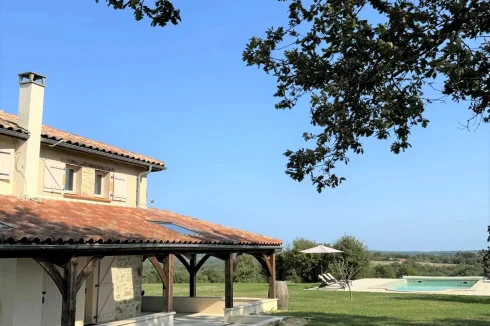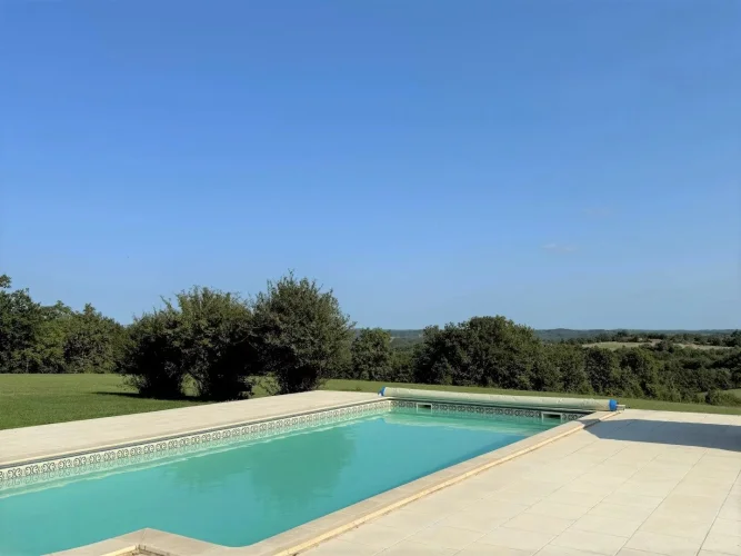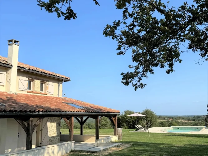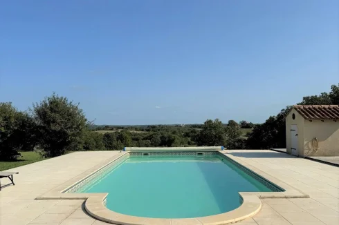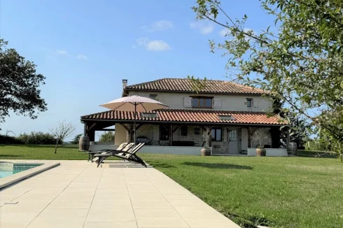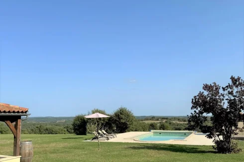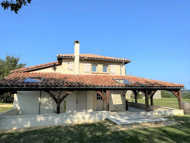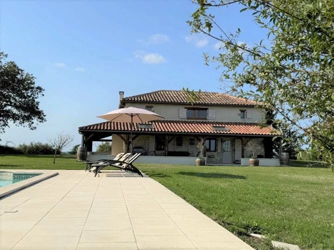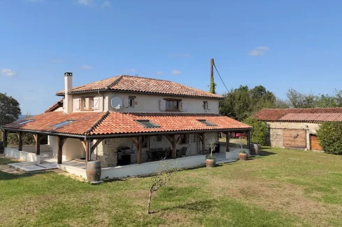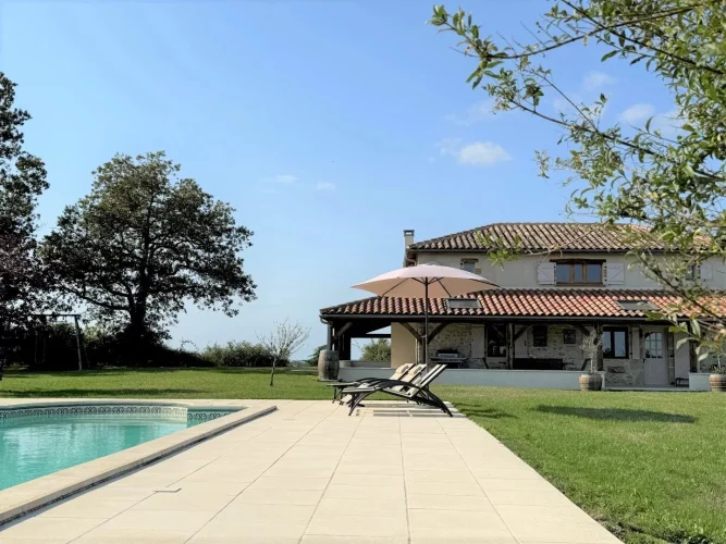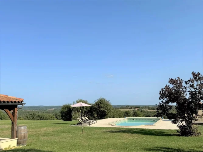 Superb views and lovely location for this renovated stone house of around 130 m² with swimming pool and outbuildings on land of around 1.8 ha and located a few minutes from Puy-l'Evêque, Lot.