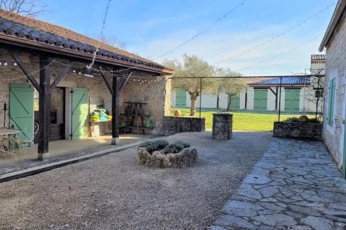 This magnificent stone property complex, entirely renovated with great care, comprises a main house (280m²), a former stable (approx. 199m²), a former barn (171.5m²), an independent guest room (17m²), a flat (67.5m²), a garden shed with storage space and its covered terrace housing a sauna and spa, as well as 2 swimming pools with a pool house.