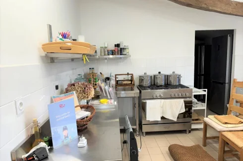 The former barn is divided into 2 areas, with a large 121 m² yoga/dance/art studio and a 50 m² dining area equipped with a professional kitchen.