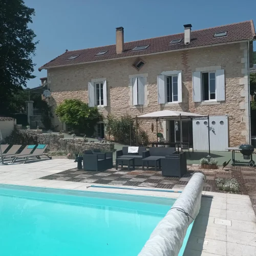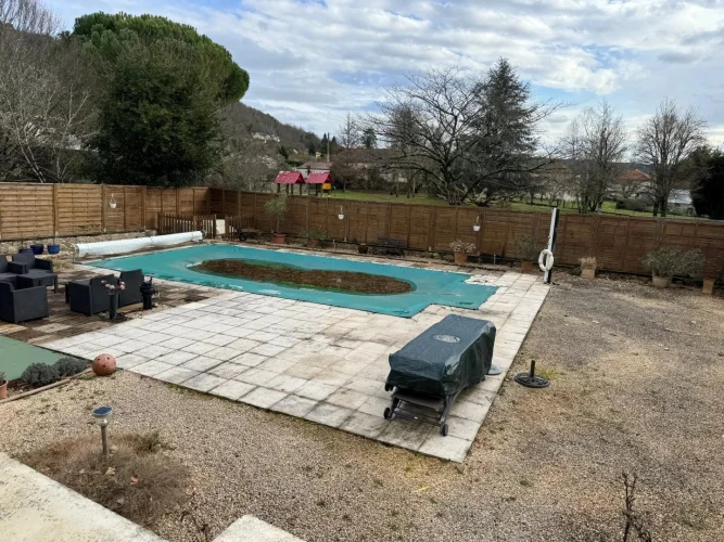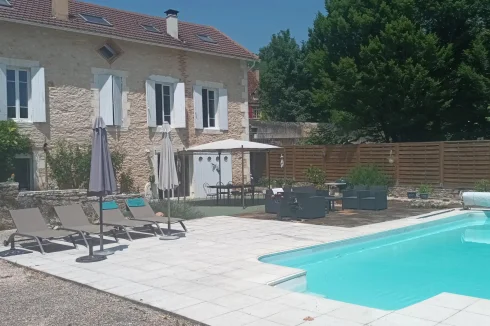 Charming stone village house with swimming pool, situated in the heart of a lively village in the Lot valley.With around 242 m² of living space, this house combines comfort and practicality. The ground floor comprises a large fitted kitchen, a large multi-purpose room ideal as a sports room or additional bedroom, a shower room, toilet, utility room, boiler room and cellar. Access to the enclosed garden allows you to enjoy the 10x5m heated swimming pool.The main level comprises a spacious lounge, a large bedroom, a dressing room, a shower room with toilet and a study. Access to the covered terrace at the front of the property.The top floor has two bedrooms, a children's bedroom, a shower room and a large relaxation area.A very comfortable house, perfect for a family or second home, situated in a pretty village with all amenities nearby.