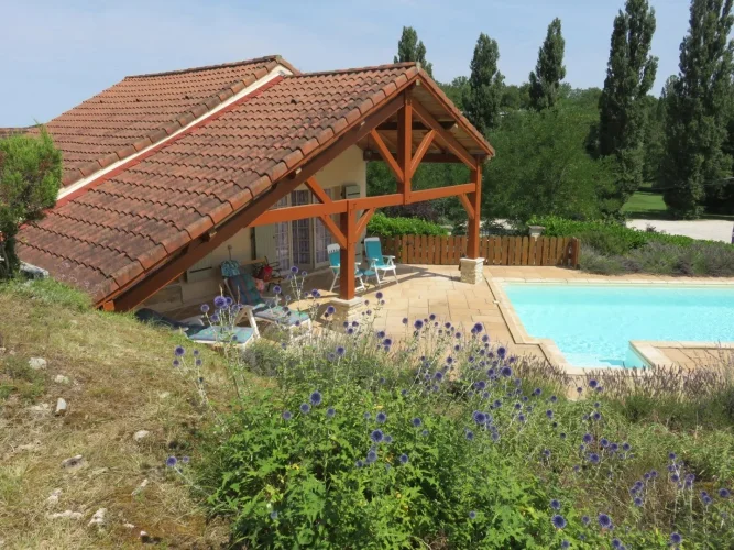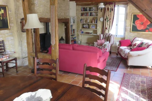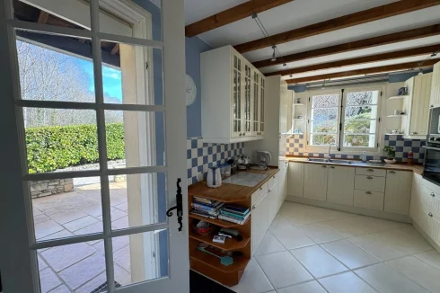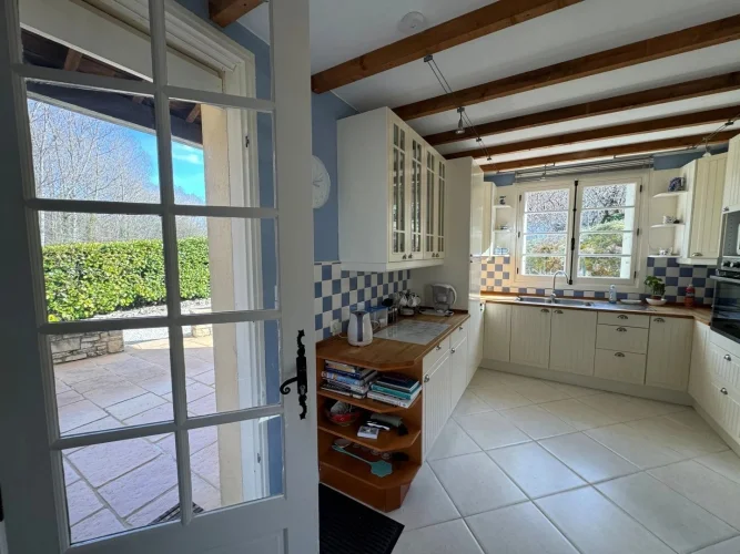 The main house has approx. 135 m² of living space and comprises a living/dining room on the ground floor and a separate kitchen opening onto a covered terrace at the rear. On the 1st floor, a corridor leads to a bedroom, a bathroom/WC and a master suite with shower room/WC. Finally, there are 2 further bedrooms on the second floor, plus a storage area. Exposed beams, joined stone walls and parquet flooring add to the charm of this house.A second large covered terrace leads to the 8x4 m pool area and to the guest house with its spacious living room, separate kitchen, bathroom with toilet and a good-sized bedroom upstairs.This property is ideal for entertaining family and friends and is just 5 minutes' walk from the heart of the village.
