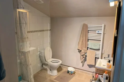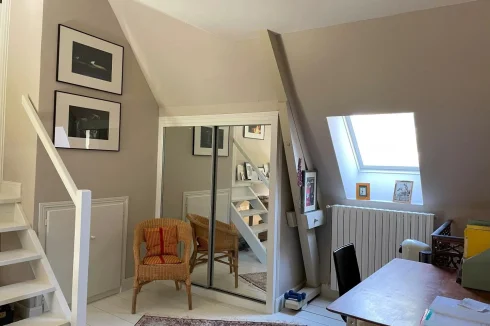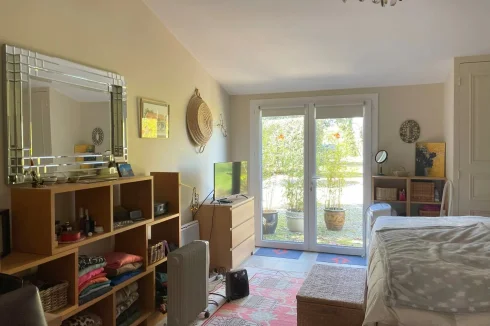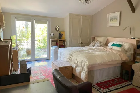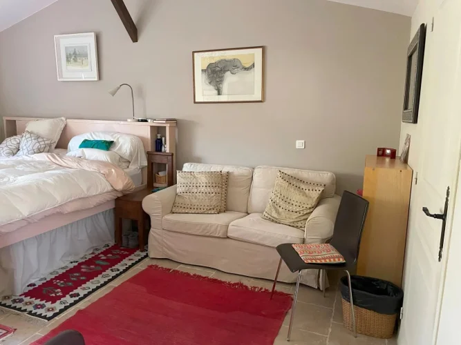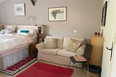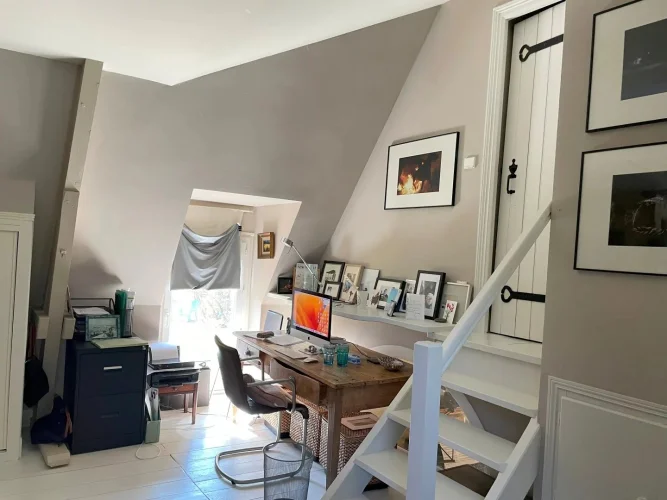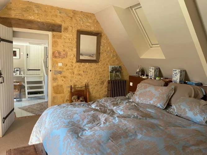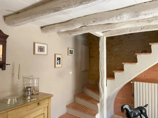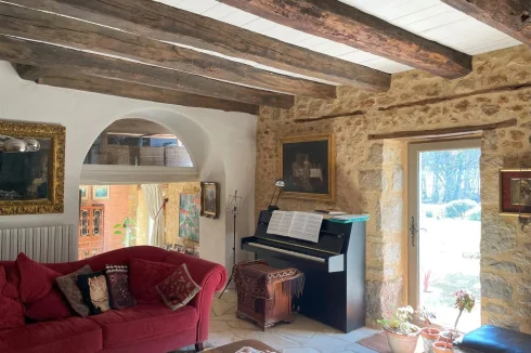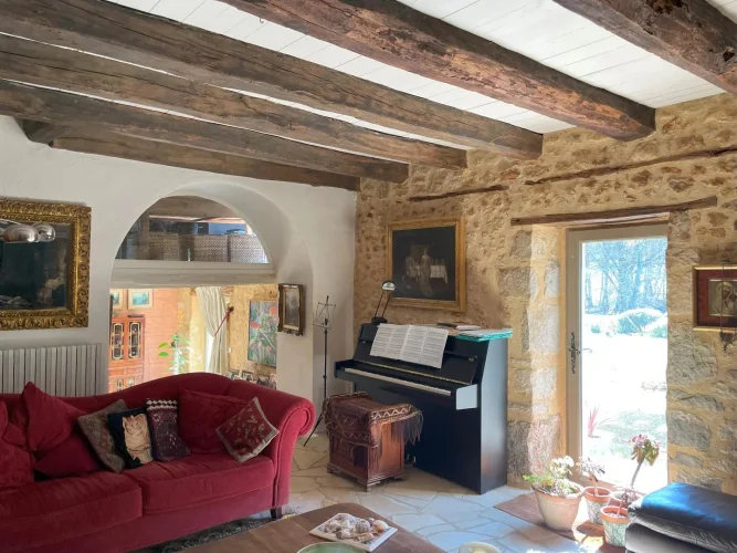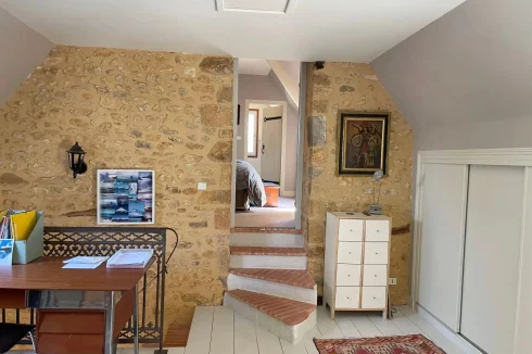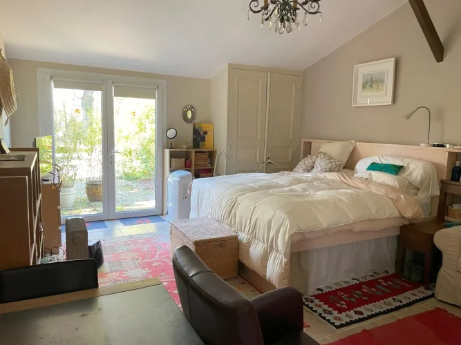 This stone house, with a living area of approximately 250 m2, comprises on the ground floor a large living room, a lounge, a fitted kitchen, a lounge/library, a shower room with toilet, a bedroom with a sanitary area, a large storeroom/boiler room. Also on this same level, a spacious bedroom with a shower room and kitchenette. This space has its own access and can therefore be used as an independent studio.