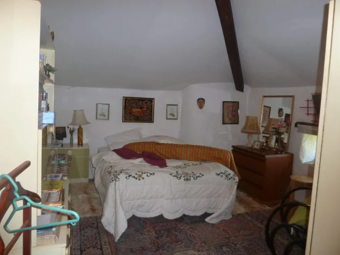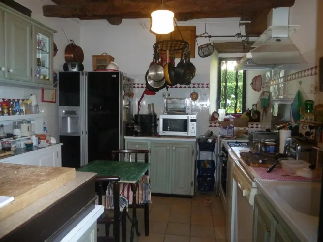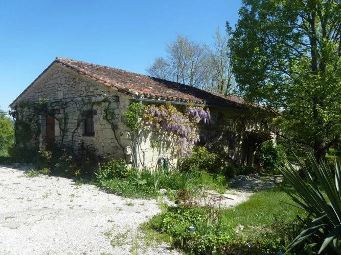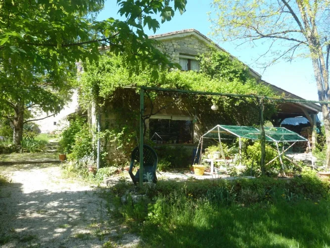 SUPERB 13TH CENTURY RESIDENCE COMPRISING A MAIN HOUSE AND A GITE, ALL ON A SUPERB WOODED PARK SIZED AT 8570m². SUPERB LOCATION: WITH STUNNING AND DISTANT VIEWS OVER THE BEAUTIFUL TOURIST LOT VALLEY, 6km FROM A SHOPPING CENTER. Main residence of 173 m² arranged on 3 levels: 3 lounges, a living room, a kitchen, 4 bedrooms, an office, a bathroom, 1 WC. Garden level: A living room of 18m² with 2 small windows and a glass door opening onto the courtyard, exposed beams. A living room and lounge of 21.40m², a multi-flame fireplace, a window, exposed beams. An office of 7.50m², with a glass door opening onto the garden, a window, exposed beams, tiled floor. A kitchen of 11.14m² (upper and lower units, double sink), 2 windows, tiled floor, exposed beams. 1st Floor: Access via a large interior wooden staircase. A 23m² living room with wooden floor, exposed beams, and 2 windows. 2 bedrooms of 8m² and 20m². A 8.25m² bathroom with a bathtub, sink, bidet, and toilet. 2nd Floor (converted attic): access via a large interior wooden staircase. A 25m² living room, wooden floor, exposed beams, 2 small windows. 2 bedrooms of 10m² and 20m². Former barn converted into a 57 m² gîte: 1 mezzanine bedroom, a living room and lounge, kitchen and shower room, WC. A mezzanine bedroom of 17.25 m². A room used as a storeroom and storage of 44 m². An adjoining carport. Separate outbuildings: A closed boiler room with boiler and fuel tank. A carport in the grounds.