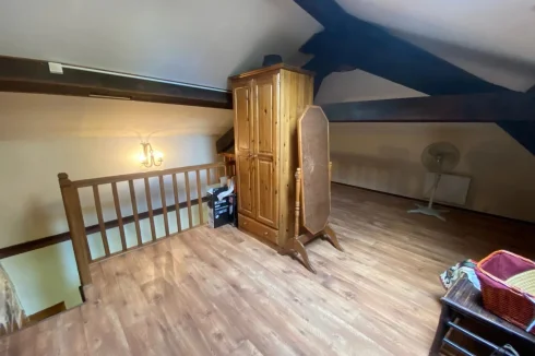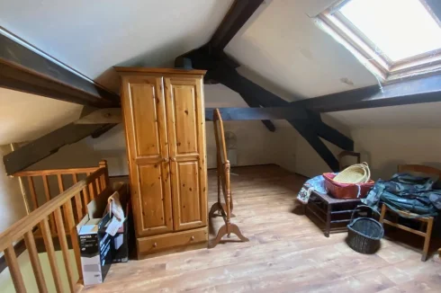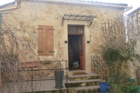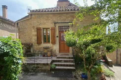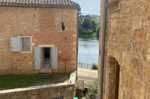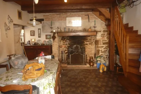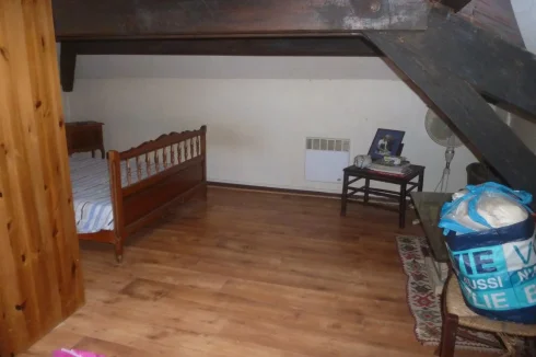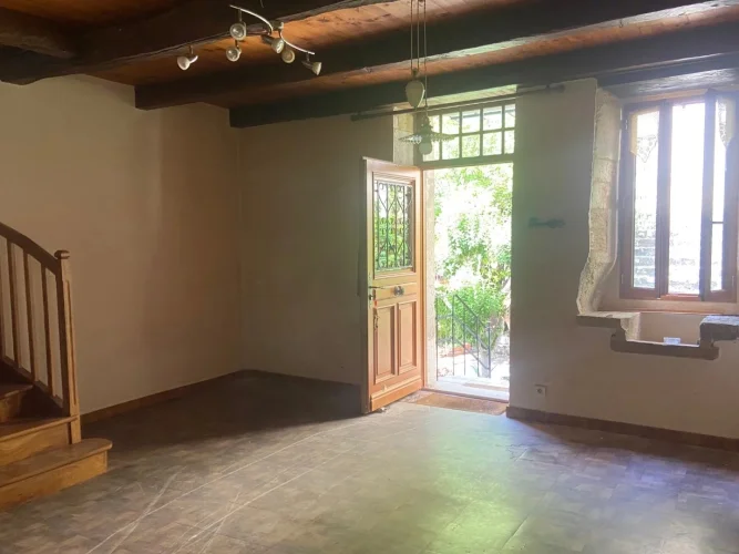 OLD STONE TOWN HOUSE WITH CHARACTER, TO BE COMPLETELY RESTORED WITH A SMALL TERRACE. LOCATION: IN THE HEART OF AN OLD MEDIEVAL VILLAGE WITH ALL SHOPS IN THE TOURIST LOT VALLEY. House of 54.25 m² partly raised on cellar, and arranged on 2 levels. A living room and lounge, a kitchen, a shower room and WC, a large bedroom, 2 rooms. Ground floor: A separate room of 9.93 m². A separate shed of 3.45 m². A beautiful living room and lounge of 26.80 m² with a superb stone fireplace, stone sink, wall cupboard, a window and door opening onto a small terrace. A kitchen of 5.69 m² with 2 windows, single sink. A complete shower room of 1.81 m², shower, sink and WC. Upstairs (converted attic): access via a beautiful interior wooden staircase: A large bedroom of 19.95 m² with sloping ceilings on the mezzanine, exposed beams with skylight, floating parquet flooring.