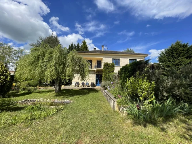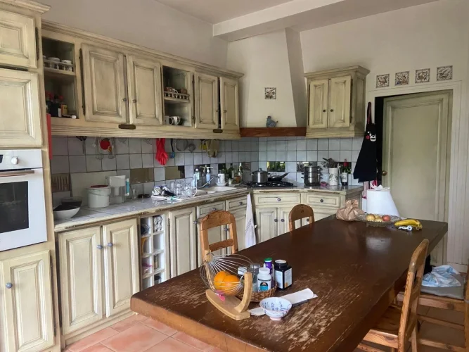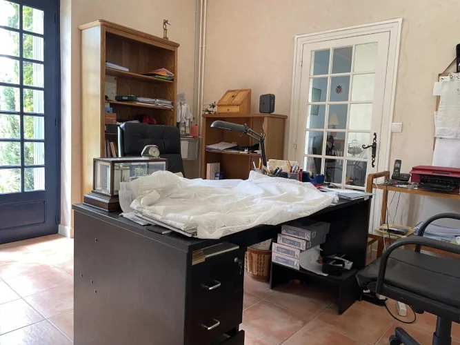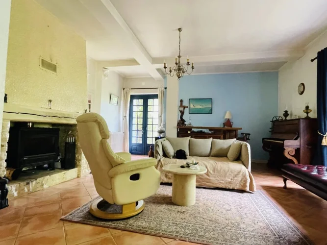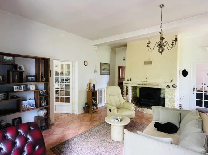 PRETTY HOUSE WITH POOL ON AN ENCLOSED AND WOODED PLOT OF 3205 M². LOCATION WITH STUNNING VIEWS. IN THE IMMEDIATE VICINITY OF A VILLAGE WITH ALL SHOPS IN THE TOURIST LOT VALLEY. (46700). Single-story house of 240 m² with 2 separate apartments: 2 kitchens, 2 living rooms, 6 bedrooms, office, 2 bathrooms, 2 shower rooms, 3 toilets, laundry-boiler room, 2 garages. Ground floor: A living room of 28.82 m², fireplace + wood stove, tiled floor. A kitchen of 21.32 m², wall and base units, cupboard, double sink, tiled floor. A hallway of 14.42 m², tiled floor. A toilet of 1.55 m², tiled floor. A bedroom of 11.22 m², tiled floor. A bedroom of 11.74 m², laminate floor. An office of 11.57 m², tiled floor. A bathroom-dressing room of 11.96 m², bathtub, laminate floor. A shower room of 4.84 m², shower cubicle, 2 sinks on furniture, tiled floor. A laundry-boiler room of 10.03 m², washing machine connection, tiled floor. 2 garages of 23.73 m² and 20.42 m². Garden level: access on the ground floor or via an internal staircase. A 16 m² entrance-hallway, cupboard, carpeted floor. A 8.28 m² kitchen, double sink, washing machine connection, tiled floor. A 1.49 m² toilet, tiled floor. A 3.14 m² shower room, shower cubicle, vanity unit, tiled floor. A 32.54 m² living room, fireplace, carpeted floor. A 1.28 m² toilet, tiled floor. A 5 m² bathroom, bathtub, 2 vanity units, tiled floor. 4 bedrooms of 13.02 m², 12.11 m², 11.15 m², 8.31 m², carpeted floor. An attic. An 8m x 4m salt-water swimming pool with a liner and paved decks. A garden shed.