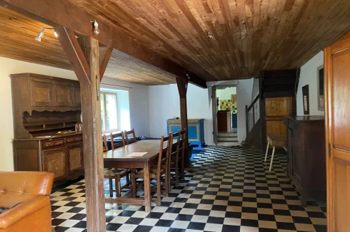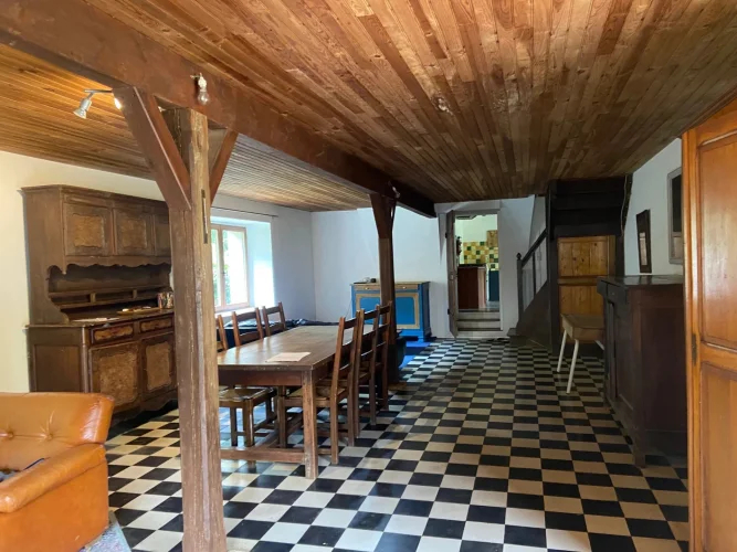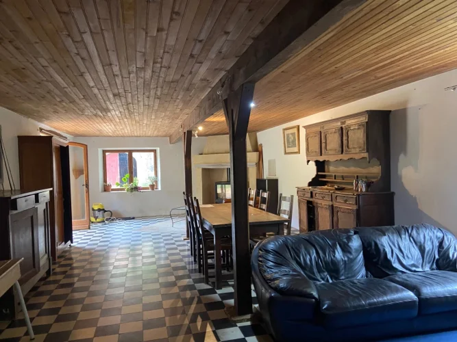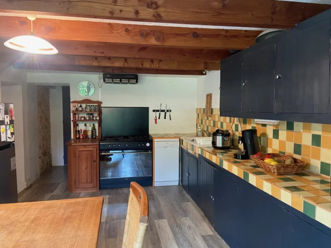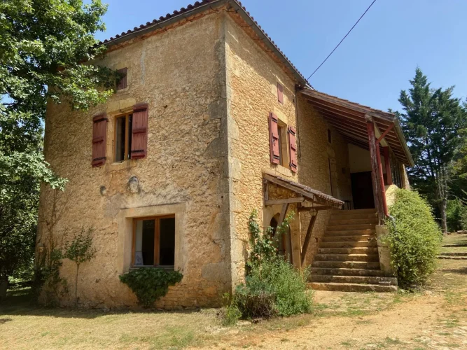 SUPERB STONE PROPERTY WITH OUTBUILDINGS ON A WOODED PLOT OF 1ha 91a 25ca. BEAUTIFUL LOCATION WITHOUT NEIGHBORS: 7 KM FROM A TOURIST VILLAGE WITH SHOPS IN THE LOT VALLEY (46 700). 150 m² house on 2 levels: living room, kitchen, 3 bedrooms, shower room, WC. Ground floor: A large living room of 54.68 m², fireplace, tiled floor. A kitchen of 15.07 m², sink, wall and base units, cupboard, exposed beams, laminate flooring. A hallway of 1.56 m², linoleum flooring. A WC of 1.31 m², tiled flooring. A shower room of 9.16 m², walk-in shower, sink on a unit, washing machine connection, floating parquet flooring. Upstairs: access via an internal wooden staircase or an external stone staircase. A corridor of 5.01 m², laminate flooring. A bedroom of 14.51 m², fireplace, cupboard, laminate flooring. A bedroom of 13.8 m², laminate flooring. A 19.77m² bedroom with closet, sink, laminate flooring. A separate 14.12m² bedroom with wooden flooring. Attic space suitable for conversion. WOOD HEATING DOUBLE GLAZING ELECTRIC HOT WATER HEATER SEPTIC TANK Outbuildings: A 112 m² stone barn including a cellar and a room that can be converted on 2 levels + wood sheds, 2 lean-tos and horse boxes. Attached to the house is a room used as a boiler room and a workshop with 2 rooms of 6.62 m² and 5.39 m², one of which has a sink. A well.