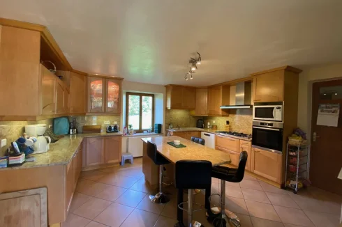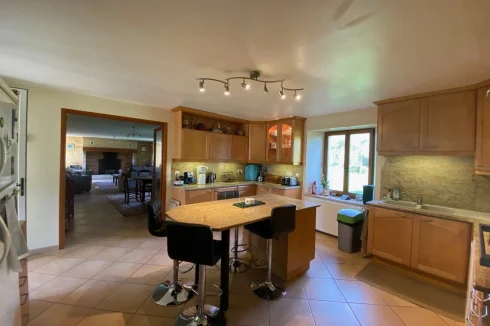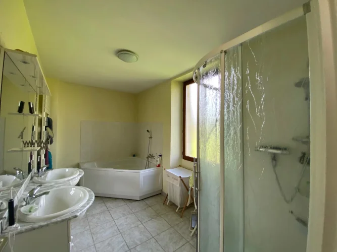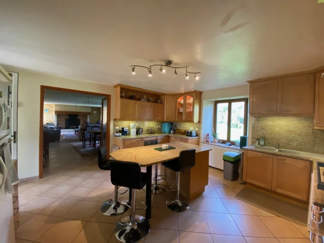 SUPERB STONE PROPERTY WITH SWIMMING POOL AND OUTBUILDINGS ON 5 HA 39 TO 50 CA OF LAND. LOCATED ON THE BANKS OF THE RIVER LOT. 3KM FROM A MAGNIFICENT VILLAGE WITH ALL SHOPS IN THE TOURIST LOT VALLEY. (46700). 188 m² house on 3 levels: living room, kitchen, 4 bedrooms, office, bathroom, shower room, 2 WCs, laundry-boiler room, cellar. Garden level: An entrance of 4.62 m², tiled floor. A 3.1 m² bathroom, shower cubicle, sink, WC, tiled floor. A 3.98 m² cellar, tiled floor. A 23.32 m² kitchen, upper and lower units, central island, double sink, household appliances, tiled floor. A living room of 49.51 m², fireplace + polyflamme stove, exposed stone, tiled floor. A 15.88 m² laundry room - boiler room. 1st Floor: access via an interior wooden staircase or exterior stone staircase: A 17.58m² landing-office, a French window opening onto a covered terrace, tiled floor. 2 bedrooms of 15.86 m², 12.14 m² including one with closet, tiled floor. A clearance of 3.77 m², tiled floor. A bedroom of 11.21 m², tiled floor. A bathroom of 8.59 m², corner bath, shower cubicle, 2 sinks on a unit, tiled floor. A 1.57 m² WC, tiled floor. 2nd Floor: access via an internal wooden staircase A 16 m² bedroom, exposed beams, laminate flooring. Convertible attic. POLYFLAME FIREPLACE STOVE + GAS CENTRAL HEATING + HOT WATER PRODUCTION? DOUBLE GLAZING? 2 SEPTIC TANKS. Outbuildings: an 11 x 5.5 m chlorine swimming pool, liner, paved decks, pool shelters. A barn including a 44.93 m² workshop and a 64.72 m² swimming pool area. A large stone barn of 232 m² comprising a room of 10.86 m², a garage of 105 m², a room of 53.19 m² and a hangar of 62.22 m².