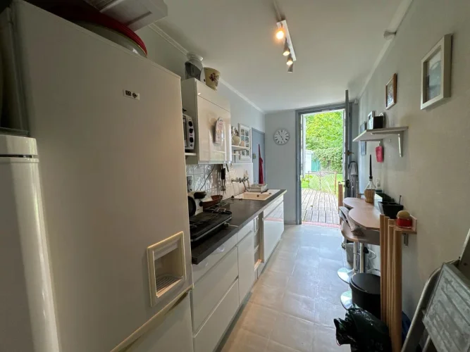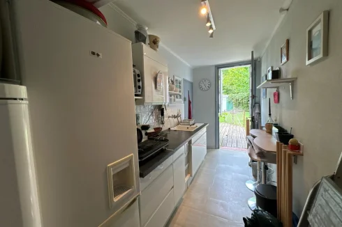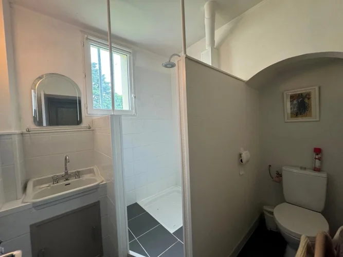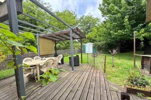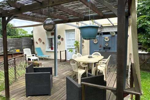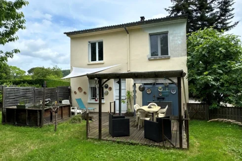 This house offers a first apartment on one level including a living room, a fitted kitchen, a shower room/toilet, and an attached garage. The first floor, with its independent access, offers a living room, a fitted kitchen, two bedrooms, a bathroom, and a separate toilet. A very pleasant terrace allows you to enjoy the 647 m² fenced and wooded garden. All the shops and services of Prayssac are within walking distance for this charming townhouse, perfect for personal use or for a rental investment.