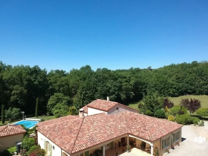 LARGE AND COMFORTABLE CONTEMPORARY STYLED HOUSE (BUILT IN 2002), OF VERY GOOD STANDING WITH POOL. ALL ON A BEAUTIFUL ENCLOSED GARDEN FOR A TOTAL OF 9335 M². VERY NICE SITUATION, IN THE COUNTRYSIDE.AT THE GATES OF THE BOURIANNE. ONLY 5KM FROM THE LOCAL VILLAGE WITH SHOPS AND TOURISTS IN THE BEAUTIFUL VALLEY OF THE LOT. (46700).