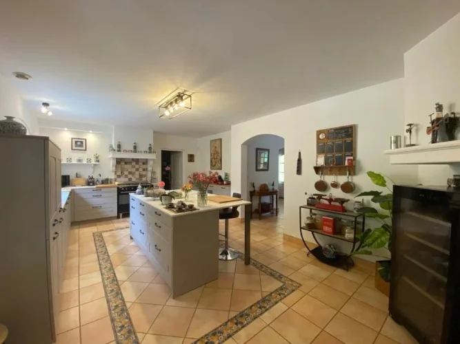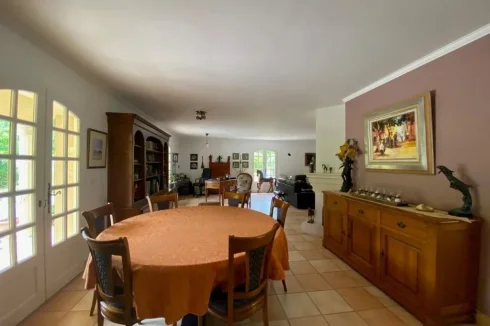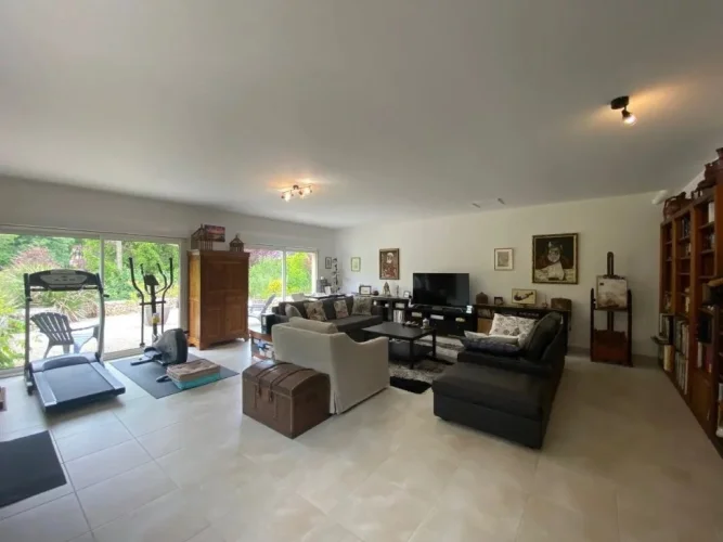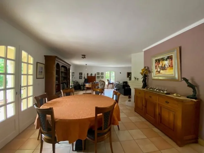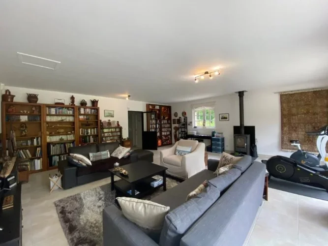 Housing mainly furnished on one level (250m²) elevated on a large garage half-buried and large cellars.4 bedrooms, 2 shower rooms, 1 bathroom, 2 WC, a large fully equipped kitchen, a large living room and lounge with fireplace, sitting room, a wine cellar and laundry room, dressing